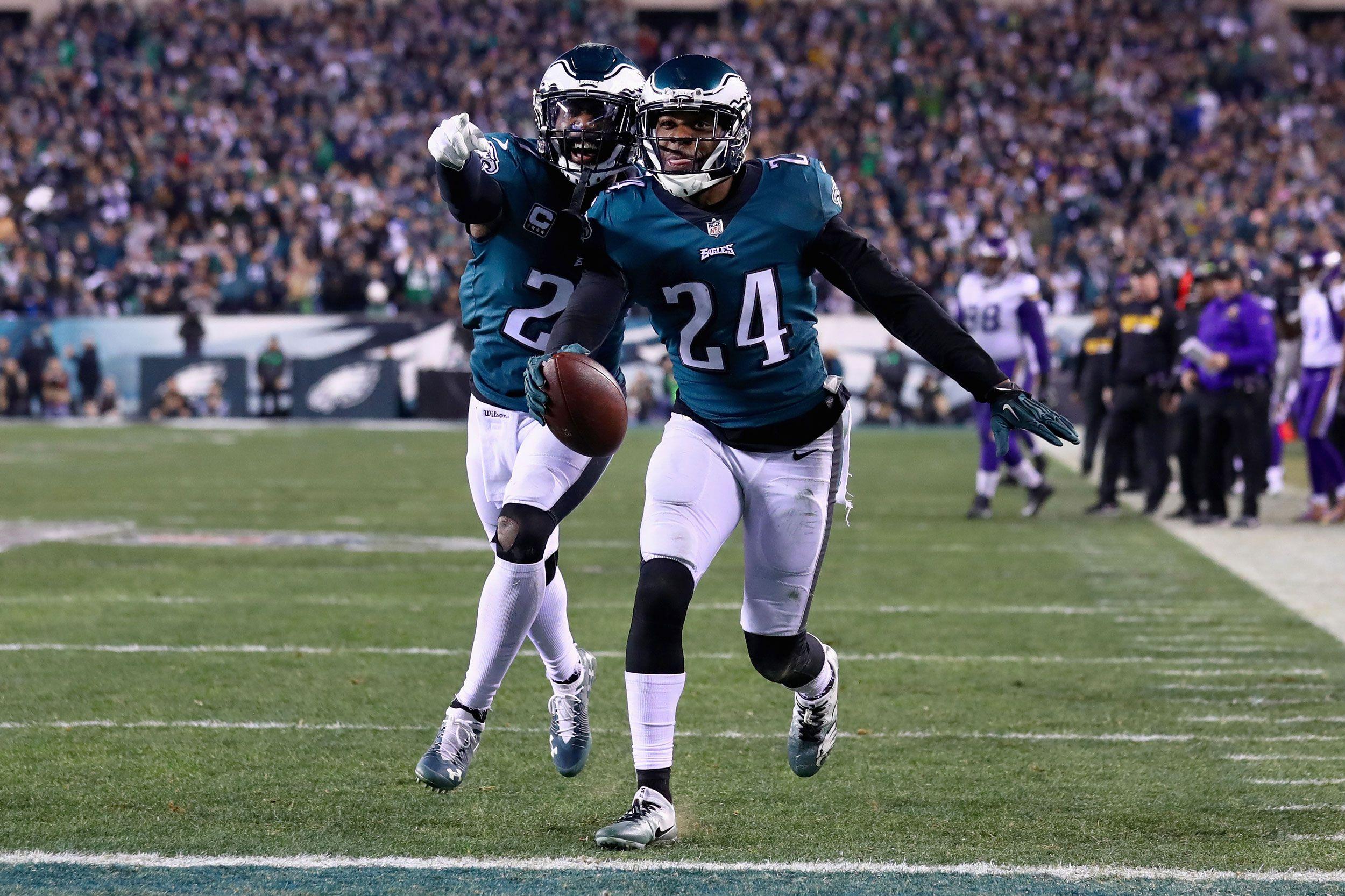 Down 7-0 midway through the first quarter and fresh off a three-and-out on their first possession, the Eagles forced Minnesota into a third-and-long just shy of midfield. At the snap, 2017 free-agent signee Chris Long beat backup Vikings right tackle Rashod Hill to the edge and got just enough of quarterback Case Keenum’s right shoulder to force an errant throw. The ball sailed directly to slot corner Patrick Robinson, another free-agent addition in his first season with the club. Robinson danced his way across the field, and fellow cornerback Ronald Darby—acquired in an August trade with Buffalo—threw the final block on running back Jerick McKinnon that propelled Robinson to the end zone. “I don’t think it just pumped up the offense,” Foles said of the pick-six. “I think it pumped up the whole city of Philadelphia. I think everyone down Broad Street heard that.”
