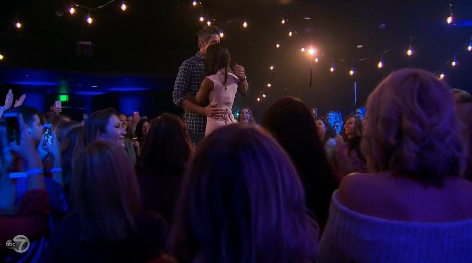 The Dance: At some of these performances, including this one, Bachelor producers build a raised platform in the middle of the concert crowd, and they make the couple dance on it. It’s extremely uncomfortable. Imagine not only being forced to dance on a first date, but being forced to dance on a pedestal so hundreds of strangers can stare at you. 2/10