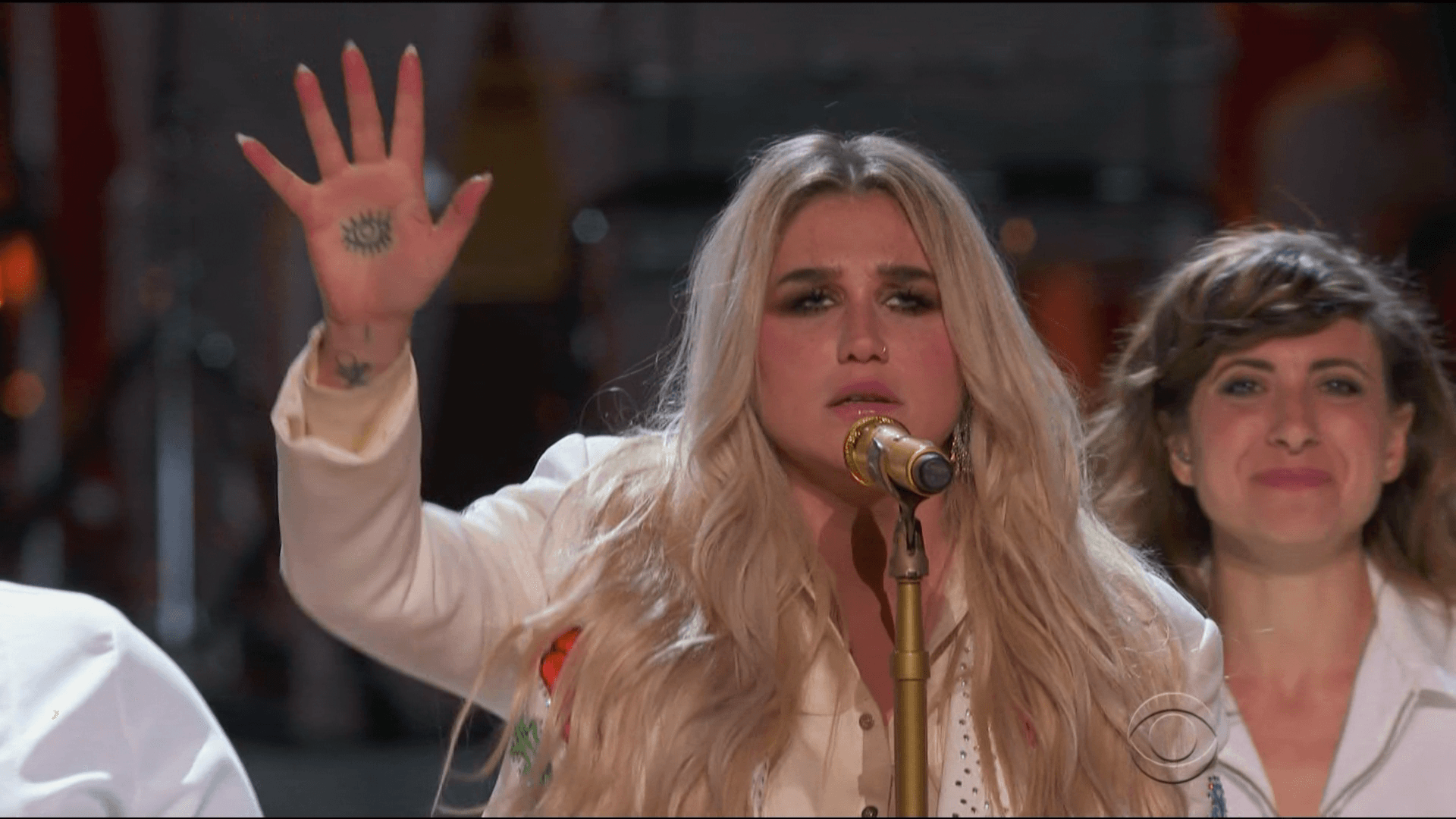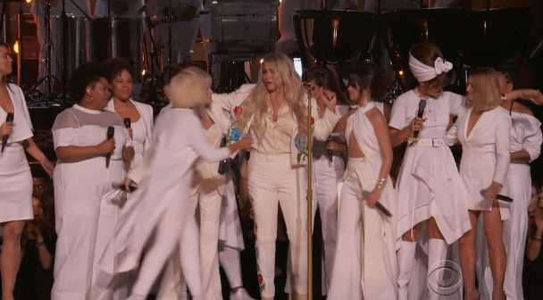 For her performance, Kesha appeared in all white and was joined on stage by a group that included Cyndi Lauper, Camila Cabello, Andra Day, and Julia Michaels. Kesha appeared visibly shaken as she sang the powerful single, which traces an improbable journey of healing: “Oh, but after everything you’ve done / I can thank you for how strong I have become.” The scene concluded with her being embraced by her fellow performers and wiping tears from her eyes.