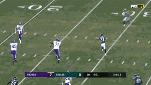During the first quarter of the NFC championship game, Patrick Robinson intercepted a pass attempt from Case Keenum on the left side of the field. The play should’ve probably ended there, but Robinson, a slippery and elusive runner, was able to wiggle his way out of the nest of players to break free toward the right side. As he reached the middle of the field, he scanned for potential threats and for potential help. He saw there were three Vikings nearby in pursuit and one Eagles player sprinting into the play. He took measure of all of the angles and variables, insta-calculated what he needed, and then made a decision: He pointed at one of the Vikings.