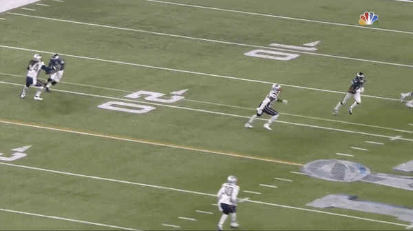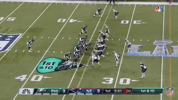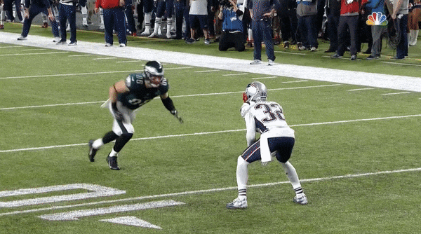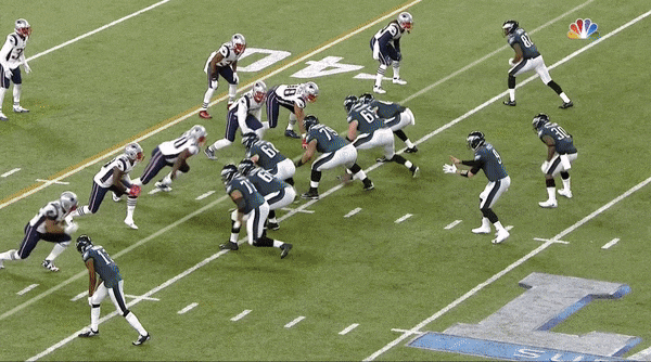 Perhaps predictably, the Patriots couldn’t stop the Eagles running game. New England had one of the worst run defenses in the league this season, ranking 31st out of 32 NFL teams by allowing an average of 4.7 yards per carry. Philly had one of the best offensive lines in the league, led by Pro Bowlers Lane Johnson and Brandon Brooks. The Eagles finished with 164 yards on 27 carries (6.1 per attempt) on Sunday, and that production often came easily. On this play, for instance, Philadelphia sent Isaac Seumalo into the game as a sixth offensive lineman; no Patriots defender was able to come within a few yards of running back LeGarrette Blount on his second-quarter jaunt to the end zone.