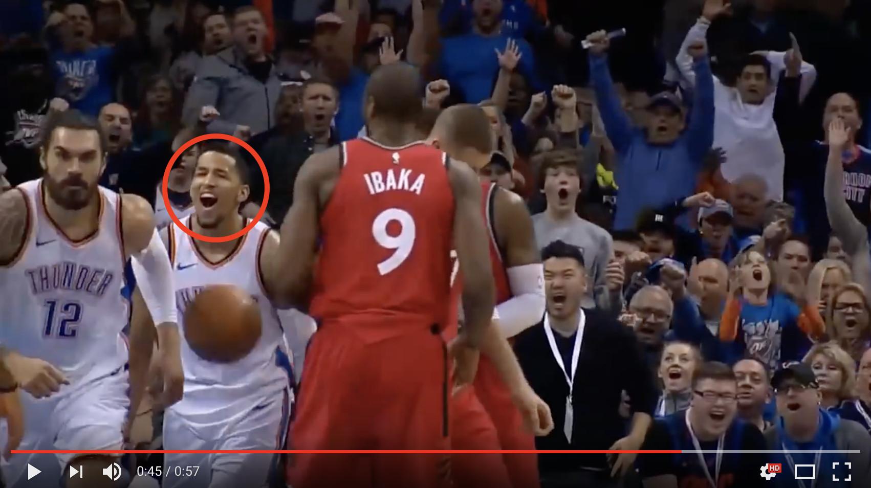 Regarding the score of the Adams dunk, let’s go with 14/20 for Difficulty (he jumped from outside of the restricted zone and also he secretly dunked on DeMar DeRozan too), 19/20 for Dunker’s Reaction (he actually celebrated while headed up court, which is a thing that I didn’t even know Steven Adams knew how to do; it was like watching a buffalo play the harmonica), 10/20 for Defense (is anyone really afraid of Jonas Valanciunas?), 3/15 for Backstory (Steven Adams has no backstory with anyone or any place; he is a ghost of the wind), 5/5 for Dunk Cleanliness, and 15/20 for Reaction of Others.