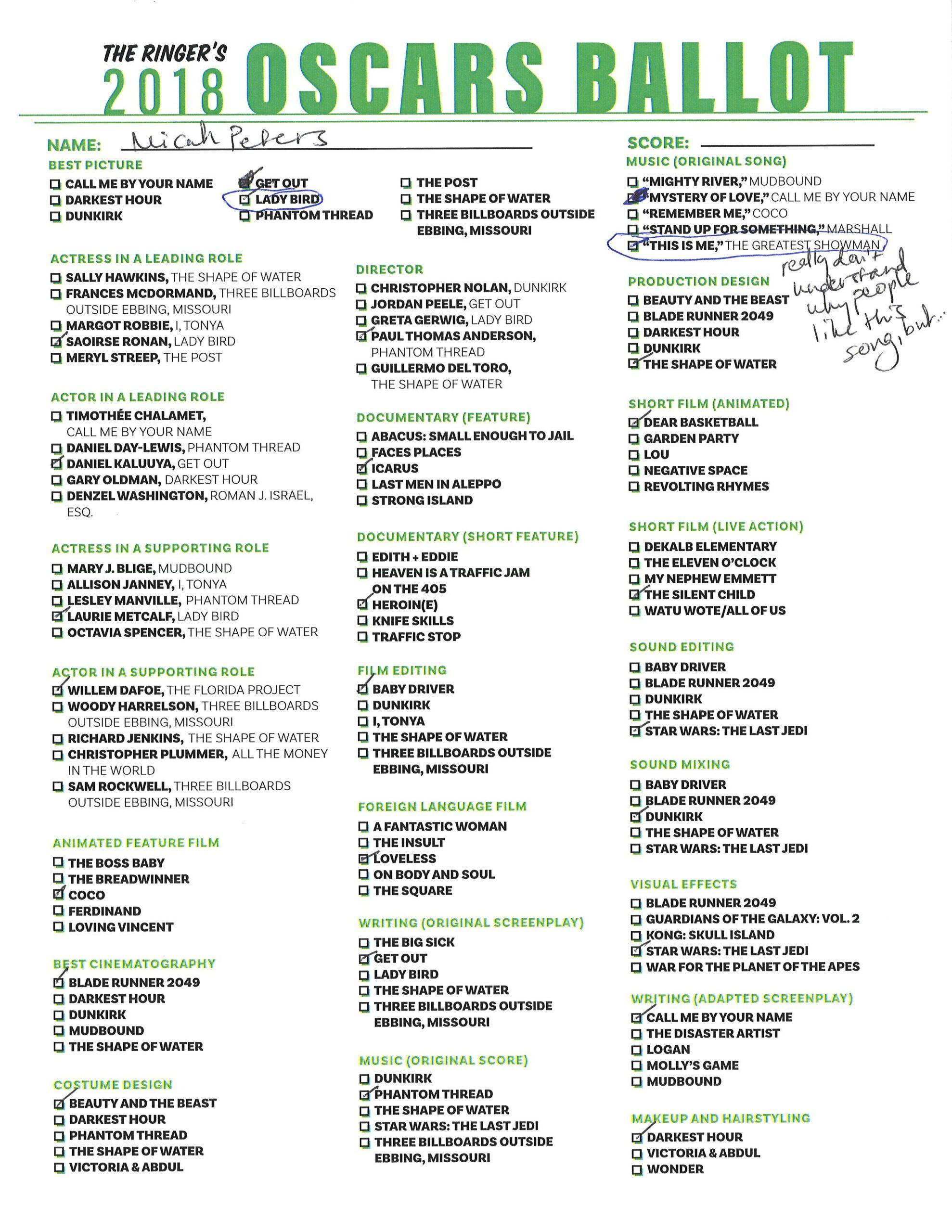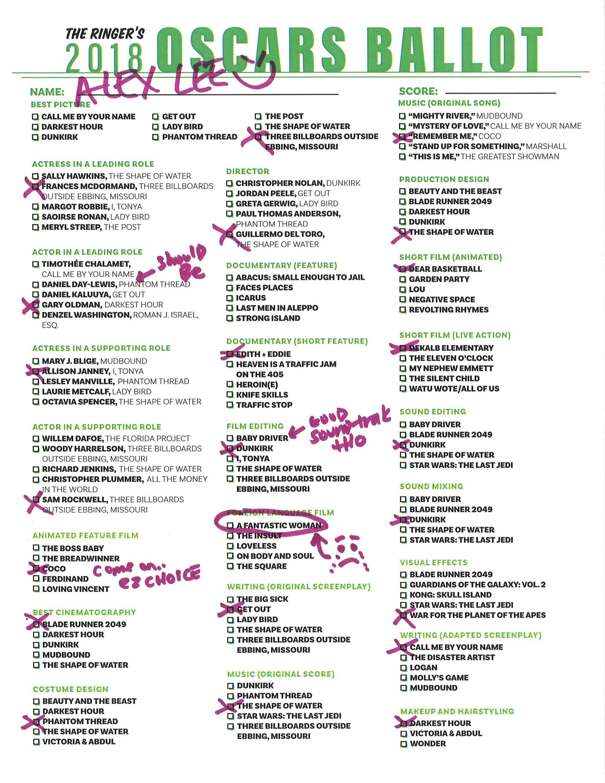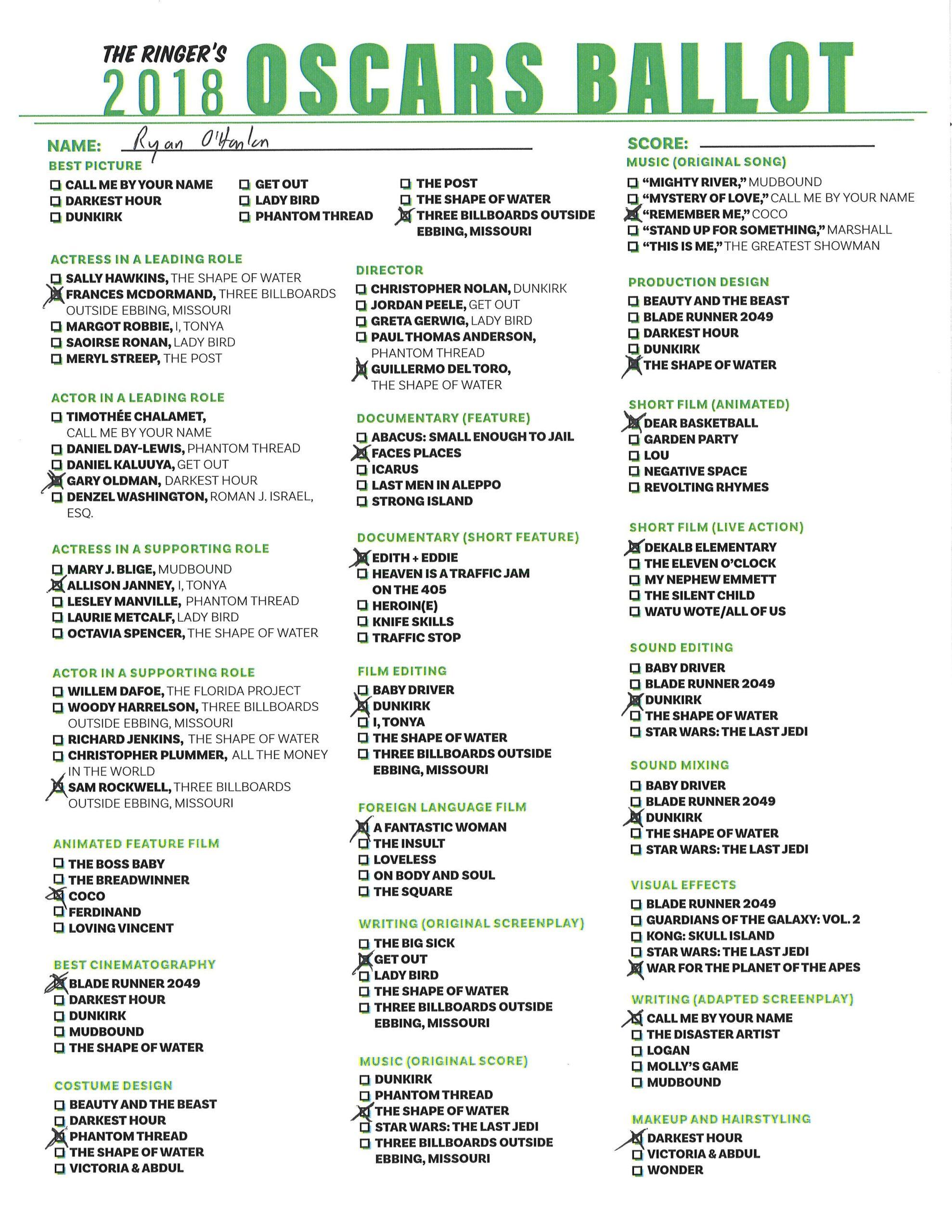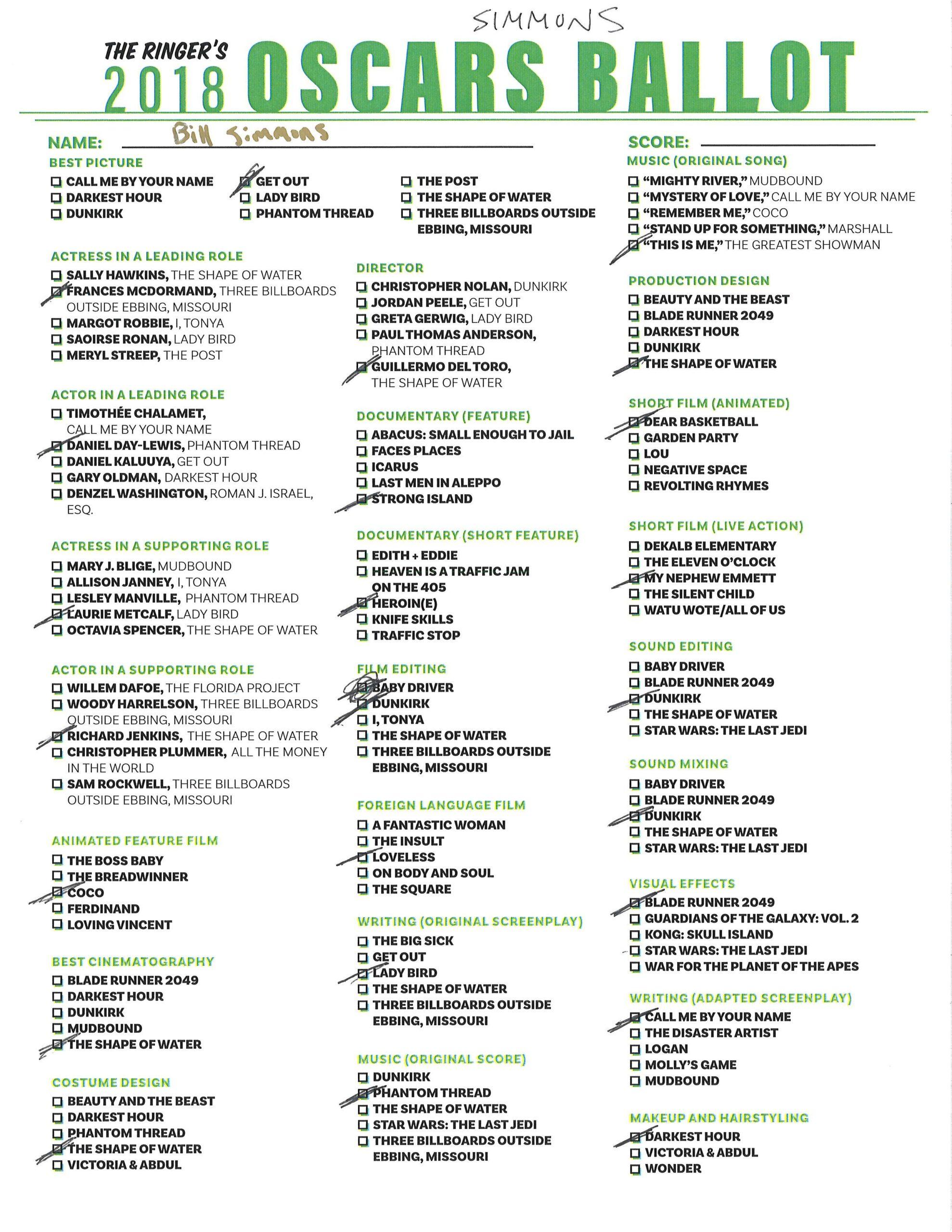 P.S. Hosting your own Oscar party or pool? We’ve got you covered! Click here for The Ringer’s printable, blank ballot.