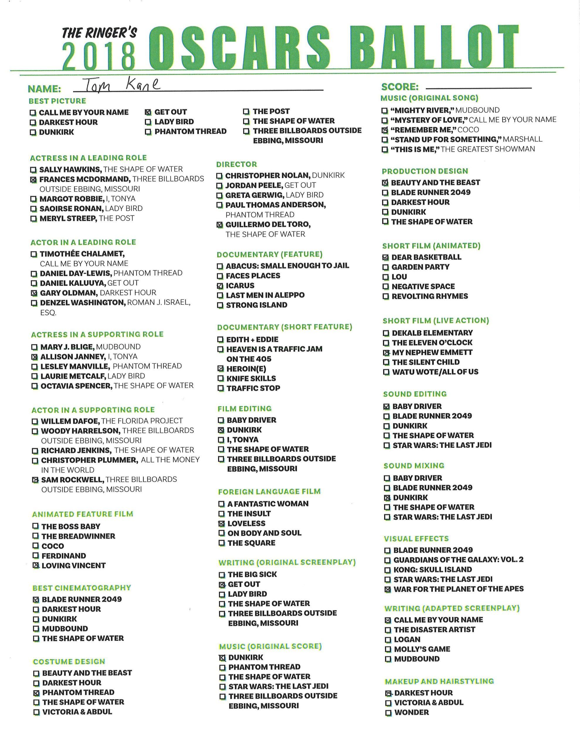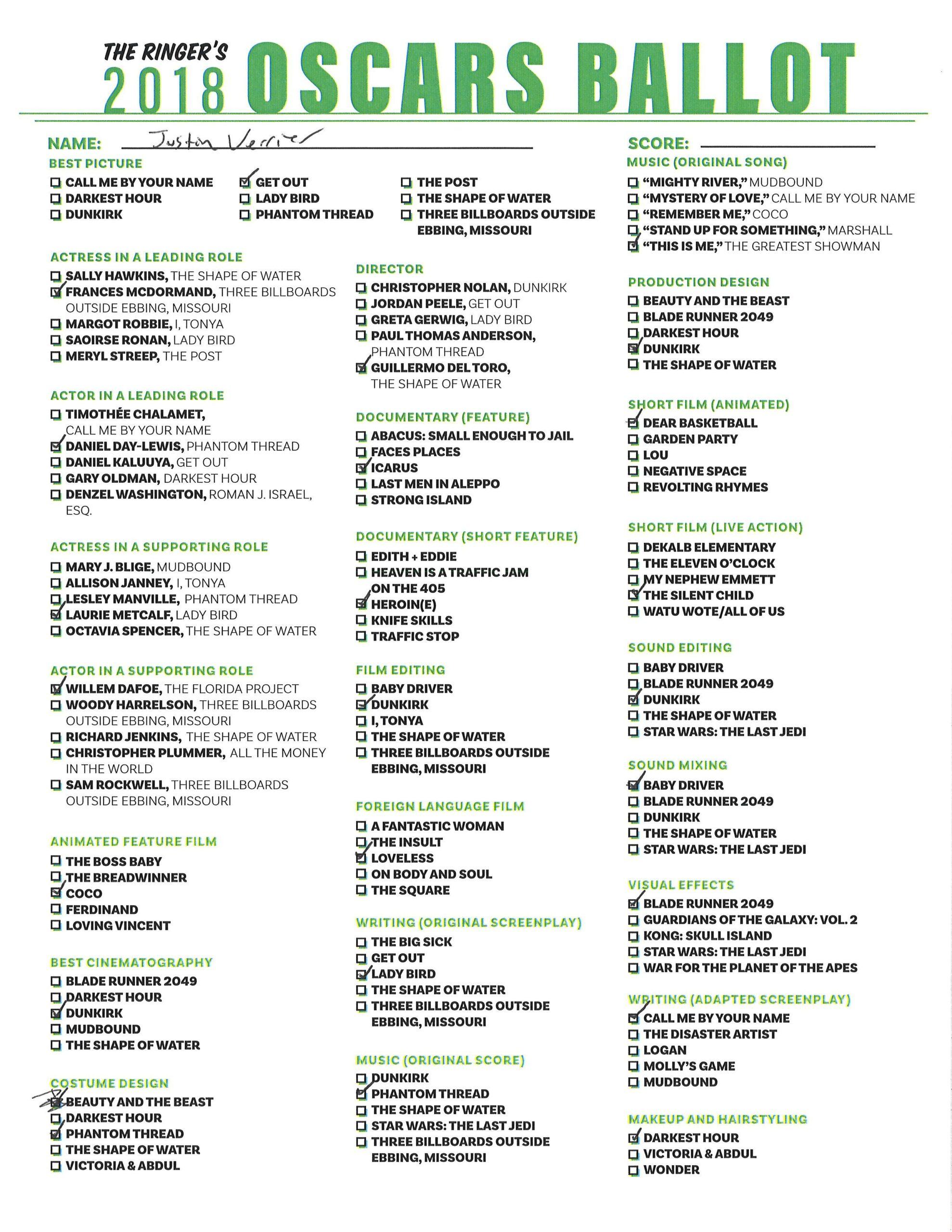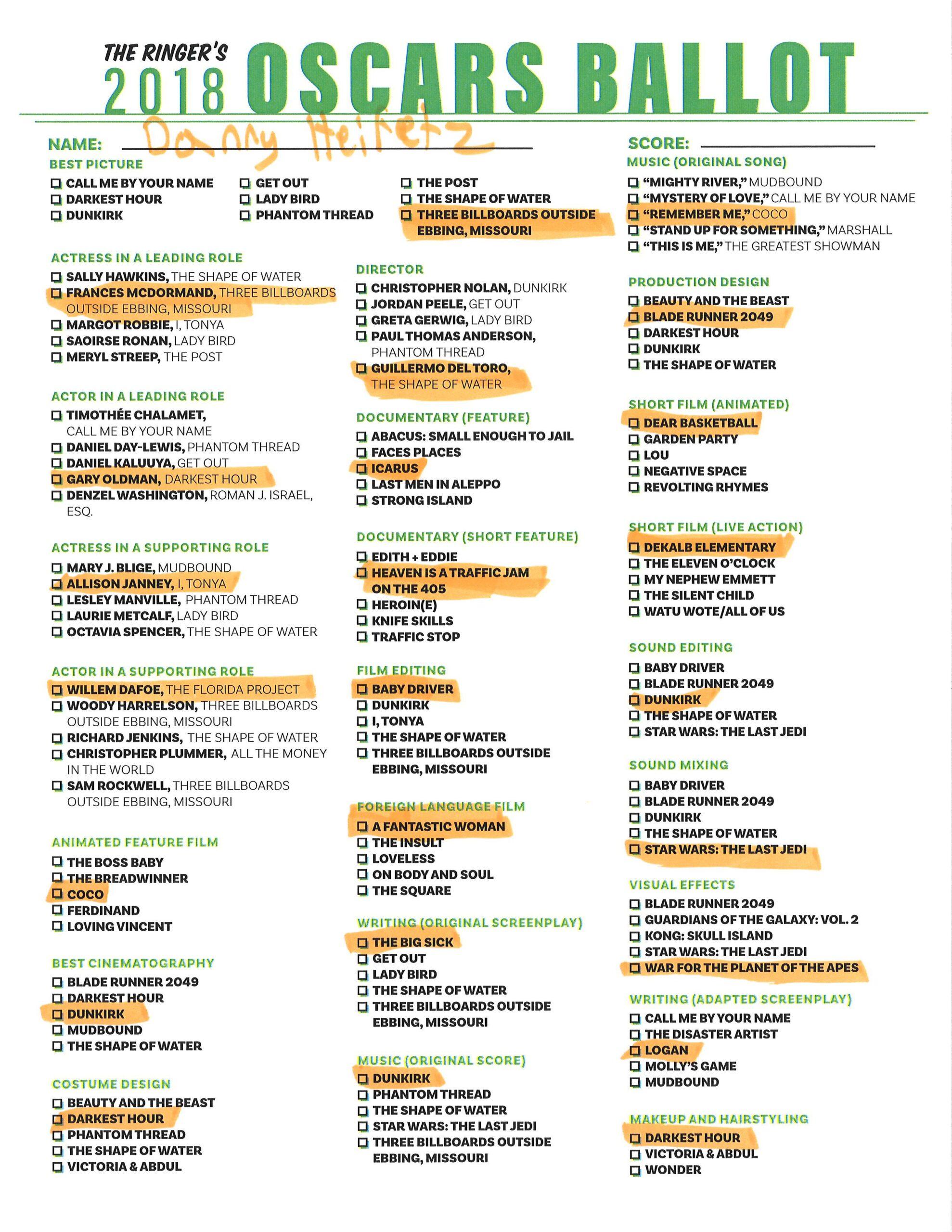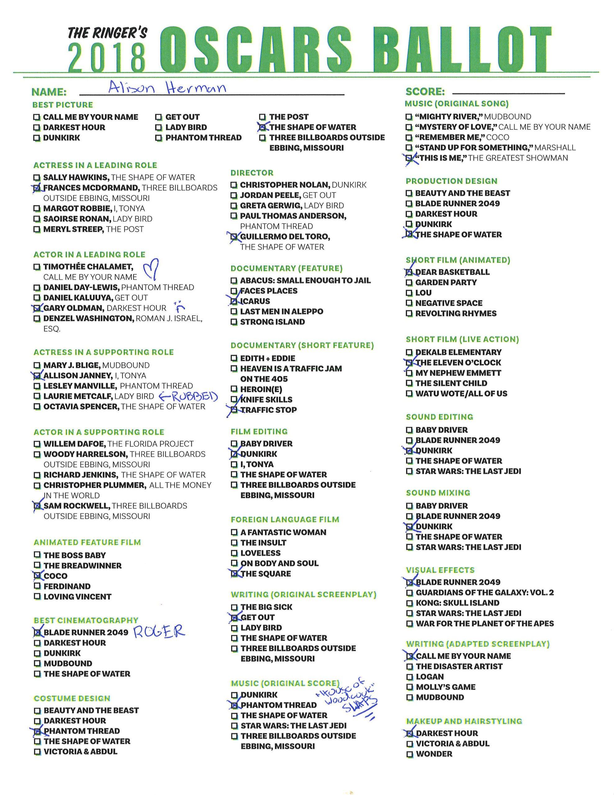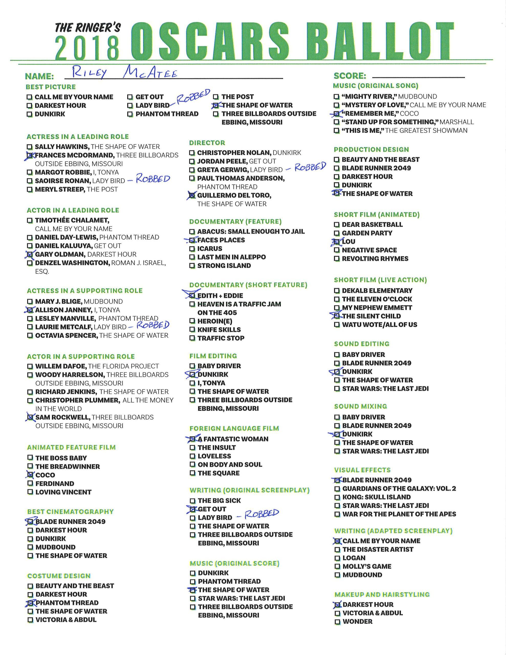 P.S. Hosting your own Oscar party or pool? We’ve got you covered! Click here for The Ringer’s printable, blank ballot.