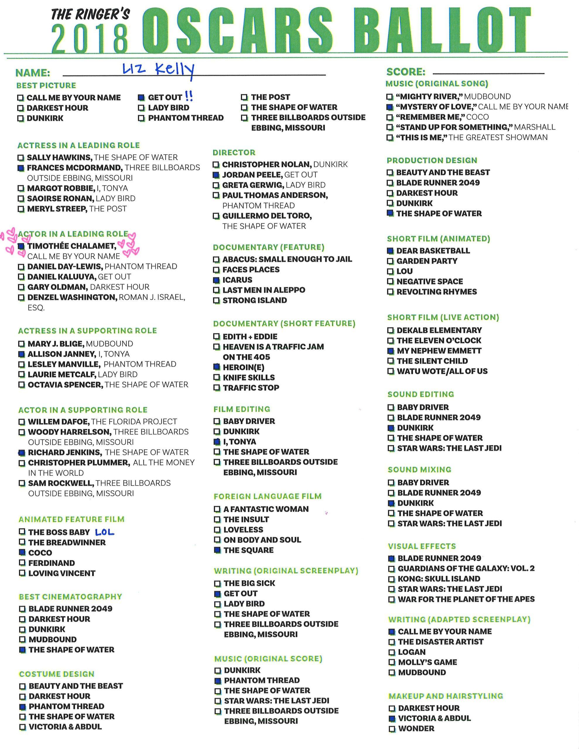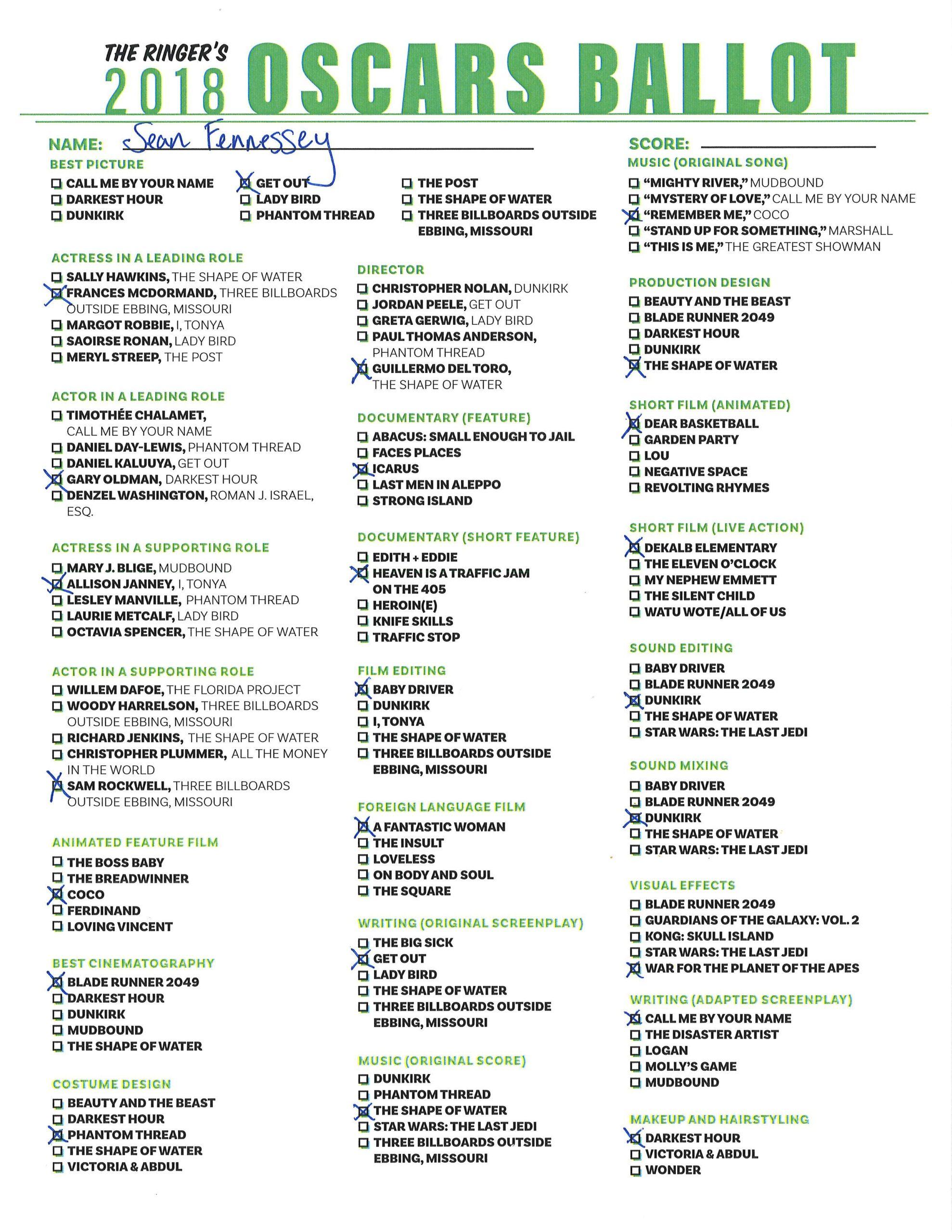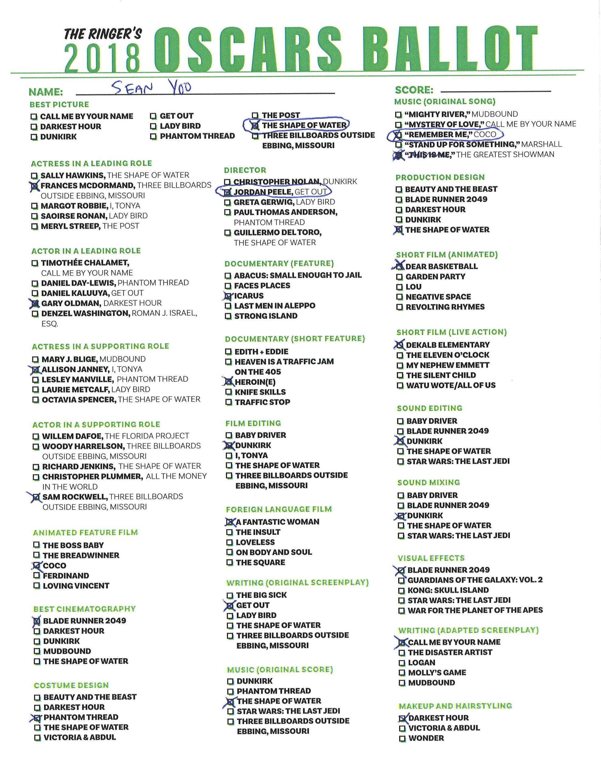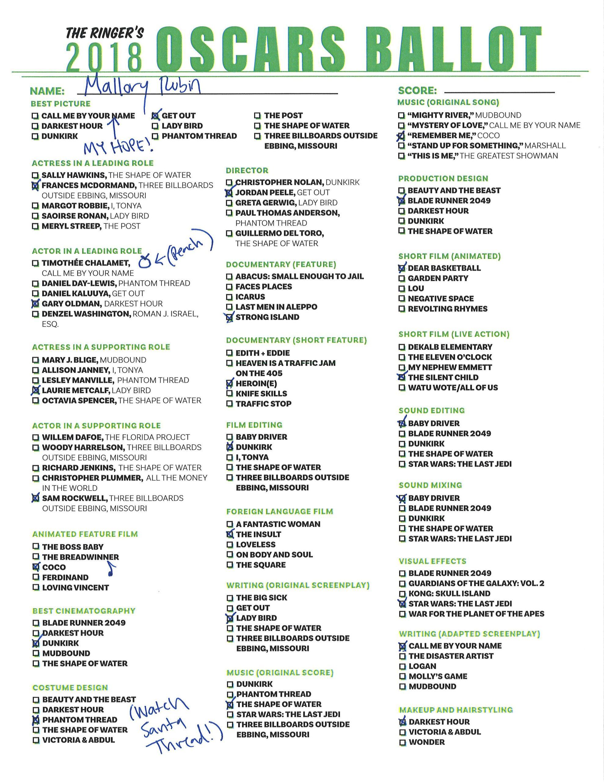 P.S. Hosting your own Oscar party or pool? We’ve got you covered! Click here for The Ringer’s printable, blank ballot.