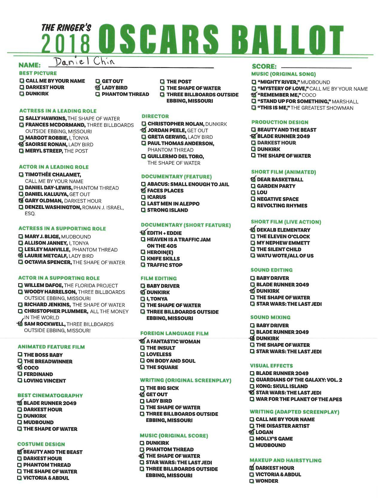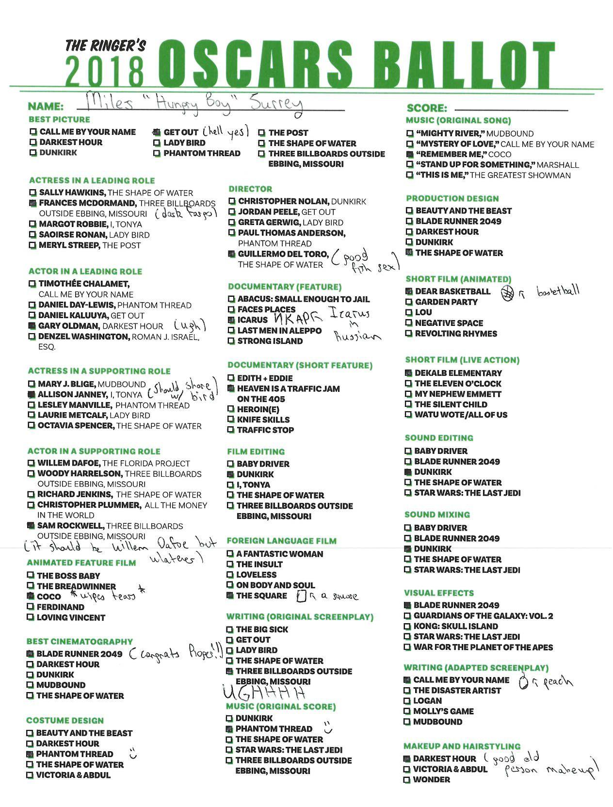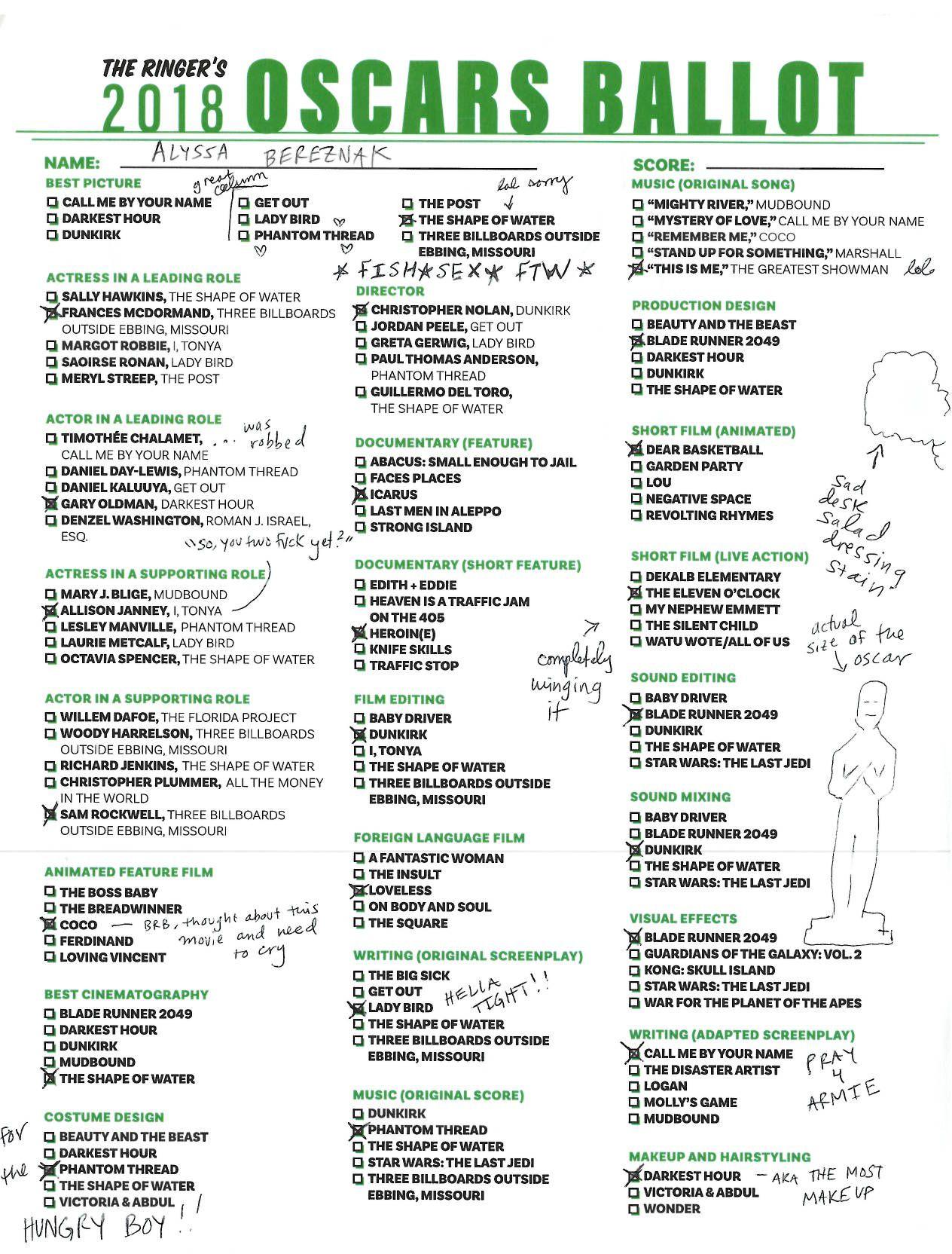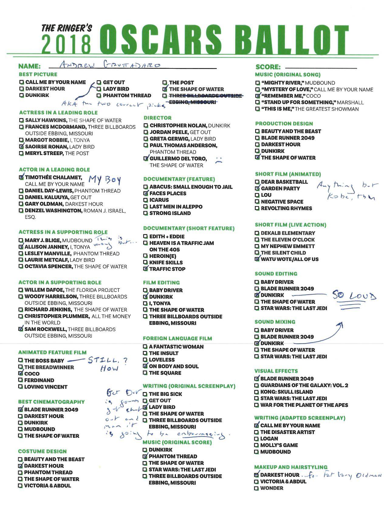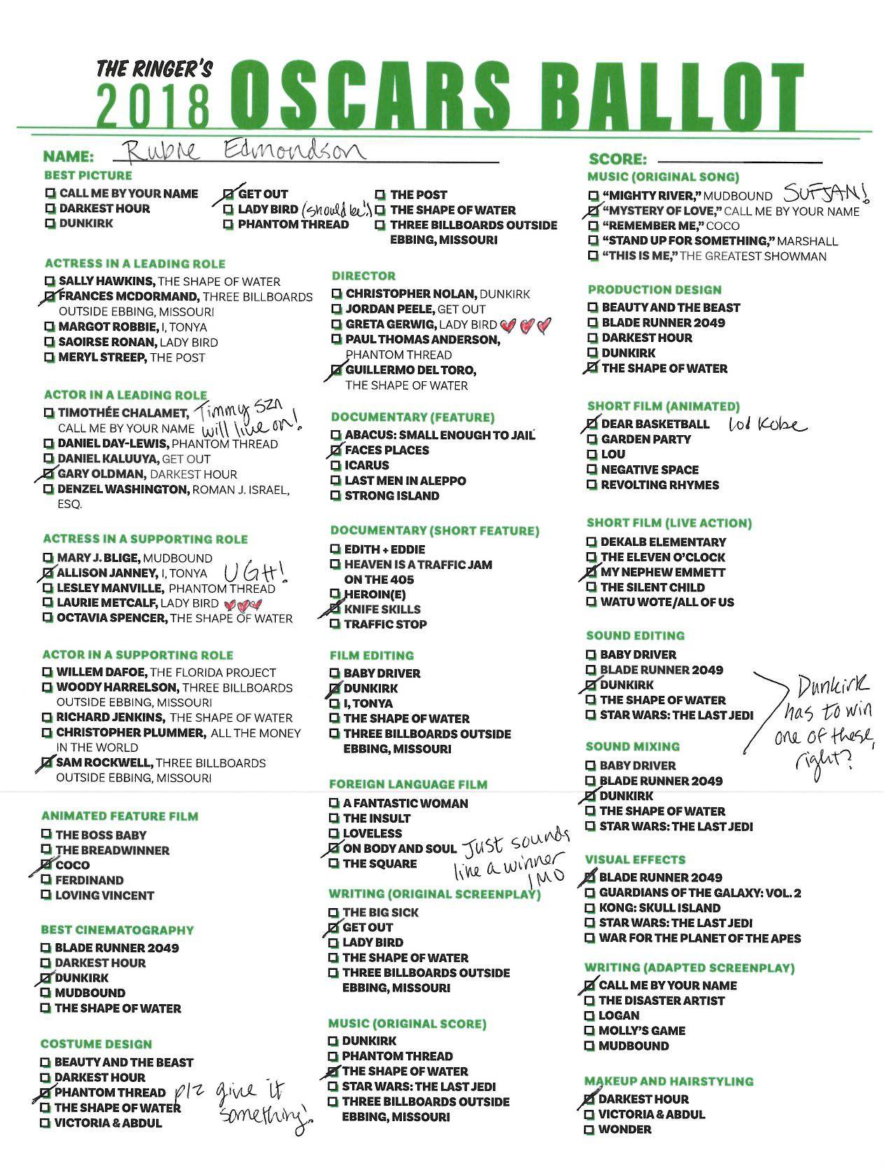 P.S. Hosting your own Oscar party or pool? We’ve got you covered! Click here for The Ringer’s printable, blank ballot.
