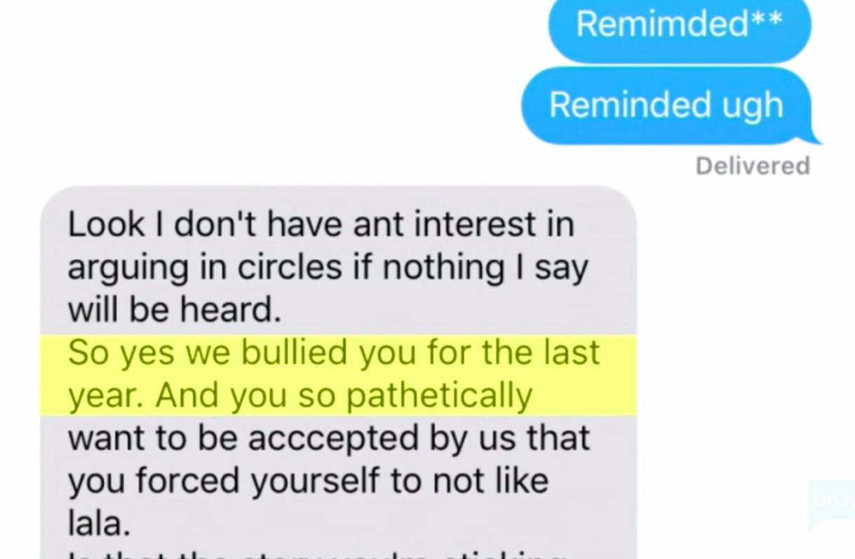 And here’s one Katie sent to Scheana this season. Note: Prior to this screenshot, Scheana explained the cause of the text was that she had said Katie had no friends, which she “meant as a compliment.” Sure, Scheana.