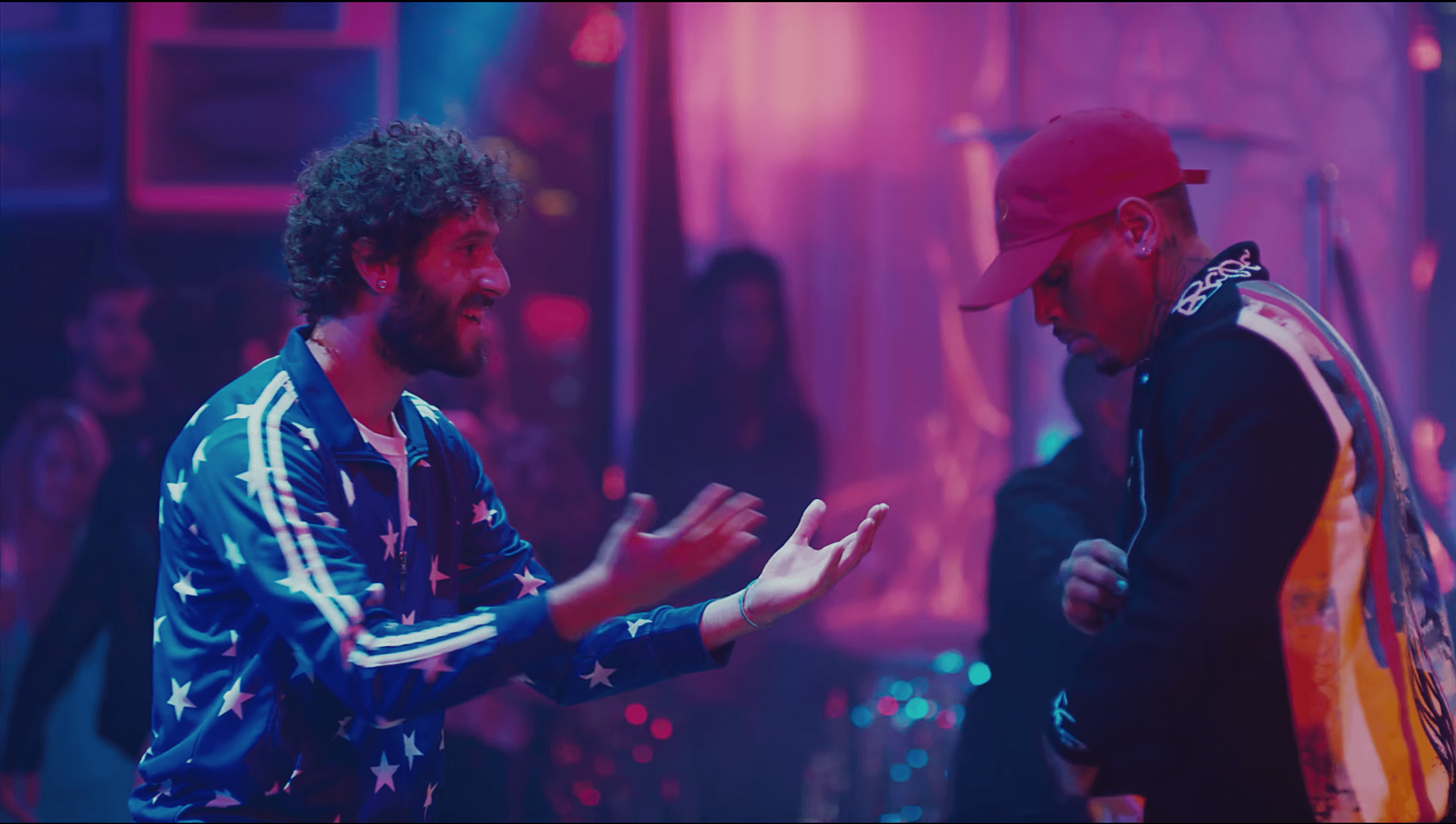 Chris Brown, on the other hand, has his issues, but his brand embodies everything that Lil Dicky’s does not: He’s a talented singer and performer with undeniable swagger. Casting Brown as his counterpart in a body-switching scenario—which, spoiler alert, is what happens, if the song title wasn’t a big enough hint—allows Dicky to both play out his greatest fantasies (being a good dancer, having women draped all over him, and, most problematically, being able to use the N-word) and self-deprecatingly lean into his utter lack of charisma and big-time success.