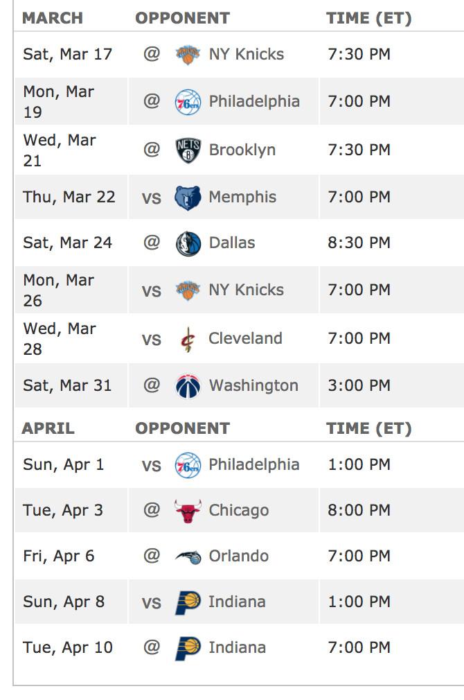 Atlanta is one and a half games behind both the Suns and Grizzlies for last (first?) place, a deficit that feels as insurmountable as going down by seven points to NCAA tournament no. 1 seed Virginia. But the Hawks have seen promising play from Taurean Prince, who in his second year has improved in every statistical category, including a 38-point night against the Bulls. Prince also hit a game-winner against the Suns that may ultimately keep the Hawks from landing the best lottery odds, but pairing him and John Collins with Marvin Bagley III wouldn’t be so bad, either.