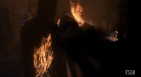 17. How do you put an exclamation point on rejecting a new peace treaty? You set Negan’s beloved baseball bat, Lucille, on fire.