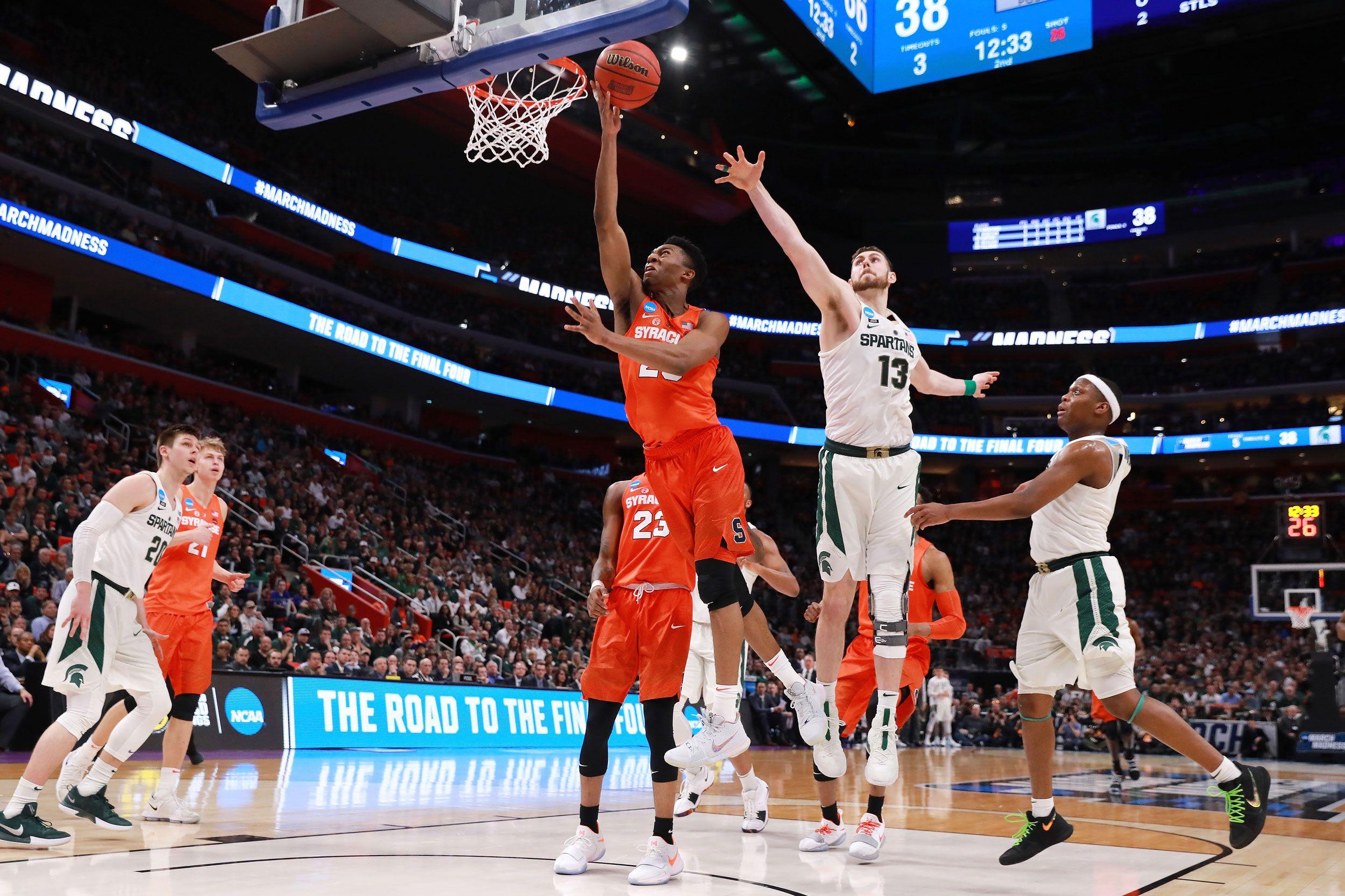 In the NCAA tournament, Cuse is shooting 37.8 percent from the field and 26.2 percent from beyond the arc. If those figures were projected over a full season, they would put Syracuse second to last and dead last in those categories, respectively. But the Orange’s opponents are faring even worse, shooting 34.3 percent from the field and 25.6 percent from 3, and committing an average of 12 turnovers per game. Michigan State’s offensive performance was absolutely disgusting in last Sunday’s matchup: The Spartans made little attempt to penetrate the zone, hoisting up a season-high 37 3-pointers. They hit eight. Their previous season high in 3-point attempts was 29; they missed 29 in this one, meaning they bricked a 3 for every 82 seconds of game time. Izzo gave a season-high 23 minutes to Carter, who was supposed to be useful against the zone, while benching projected NBA lottery pick Jaren Jackson Jr. But Carter wasn’t particularly successful against the zone, repeatedly passing up open shots.