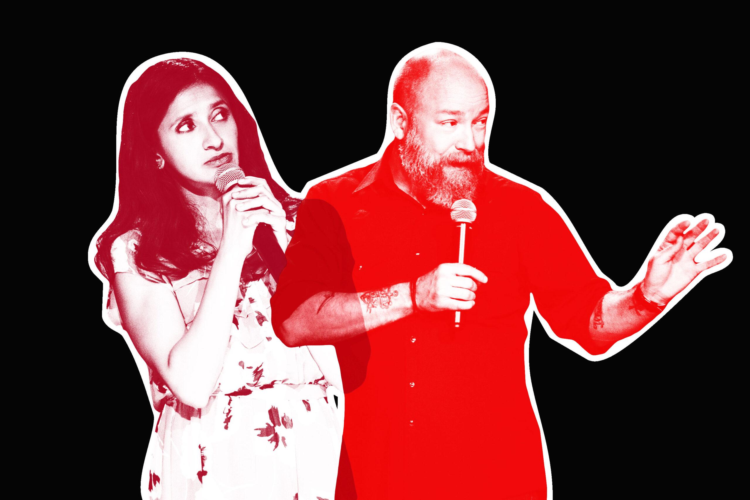 Two comics in particular stand out enough to become the clear highlights of this volume of The Standups. Kyle Kinane and Aparna Nancherla are radically different entertainers at very different points in their careers. Kinane is arguably the biggest name among this Standups crew, with four previous specials (working backward: Loose in Chicago, I Liked His Old Stuff Better, Whiskey Icarus, and an episode of Comedy Central Presents) plus an album-only hour (2010’s Death of the Party); eagle-eared viewers will also recognize him as the longtime voice of Comedy Central. Nancherla is well established in certain circles, having written for Late Night With Seth Meyers, voice-acted on the fourth season of BoJack Horseman, and joined the cast of Comedy Central’s capitalist satire Corporate. Still, The Standups is only Nancherla’s second full-length special, after an episode of The Half Hour in 2016. (That same year, Nancherla also released an album titled Just Putting It Out There.)
