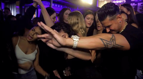 20. Pauly D is grinding on this woman that he’s super infatuated with. As his wingman, Vinny holds the woman’s hand for balance while she twerks on Pauly, because she has a bad back.