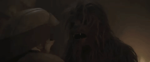 Also, did you know that Chewbacca is 190 years old when Solo takes place? “You look great!” Han says after this discovery, except the line’s delivered by Alden Ehrenreich so it’s immediately not that cool. But that means Chewie is over 200 years old when A New Hope begins, which is pretty wild, honestly. (According to nerds, Wookies can live up to 500 years.) Imagine doing this to someone while nearing the second century of your life: