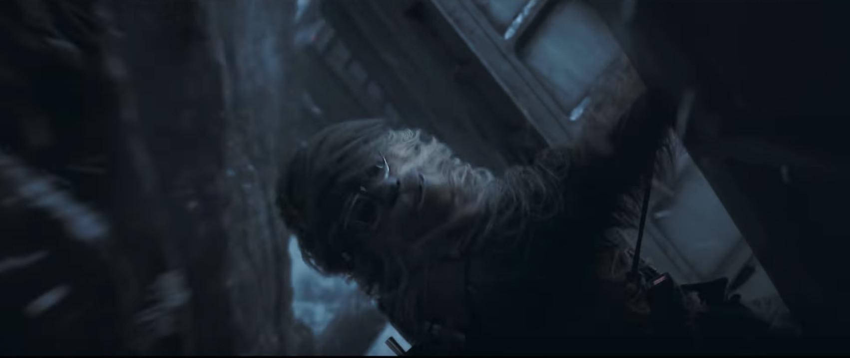 This is part of an intense climactic sequence in the trailer in which Chewie’s on a moving train-like thing, about to get sideswiped by a boulder and possibly killed. (Good move by screenwriters, putting in the train action scene from Fast Five as a crutch.) Unless you’ve never seen another Star Wars movie, you know he’s going to be alright, but after Chewie stole the show throughout this trailer, I still let out an impassioned “CHEWIE!!!!!” in fear of his safety.