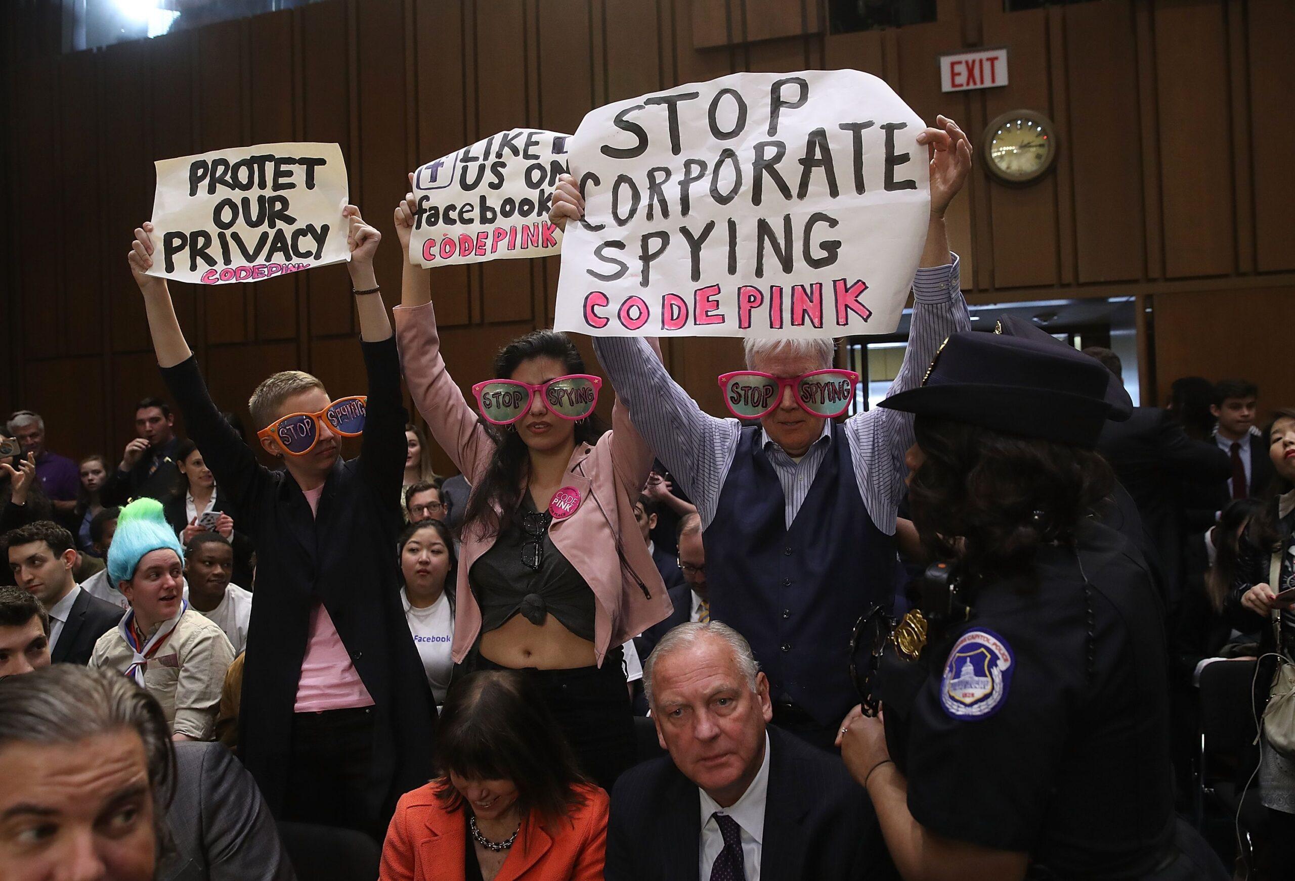 Luckerson: Shortly before Zuckerberg’s hearing Tuesday, a trio of protesters in neon-colored glasses stood in the middle of the Senate chamber. They were from Code Pink, a women-initiated social justice movement working to end U.S.-funded wars. Their signs voiced their displeasure with Facebook’s data-collecting practices—well, two of them did, anyway. Between the messages blaring “PROTECT OUR PRIVACY” and “STOP CORPORATE SPYING,” the protesters still got in time for a social media plug: “LIKE US ON FACEBOOK.” The juxtaposition shows just how deeply Facebook has woven its way into our communication habits, even as people are repelled by the tactics the company used to make itself so essential. If you want to voice your opinion to the world, there really is no quitting Facebook.