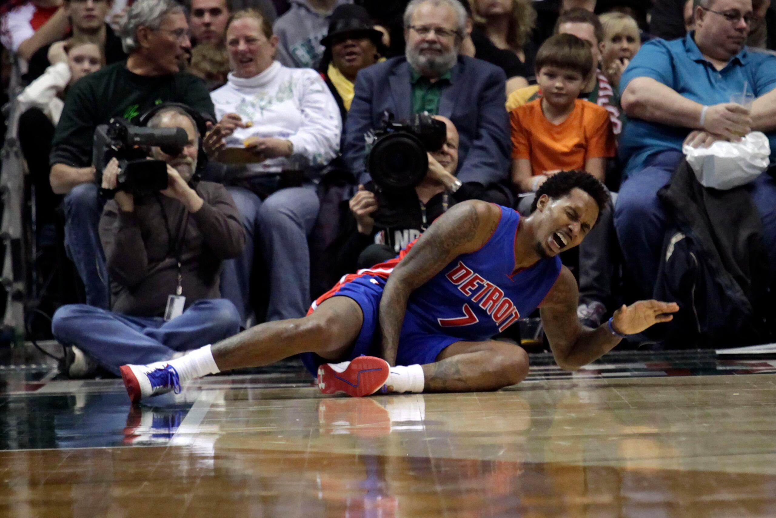 On January 4, 2015, Detroit played at Milwaukee. Jennings was back at the BMO Harris Bradley Center, playing before a crowd that still showed him love. Late in the third quarter, he applied full-court pressure on an inbounds to Brandon Knight. As the two jockeyed for position, Jennings stumbled back, then crumpled to the floor. While the Bucks played five-on-four, Jennings writhed on the other end of the court, smacking the hardwood, grasping his ankle, eyes closed, in agony.