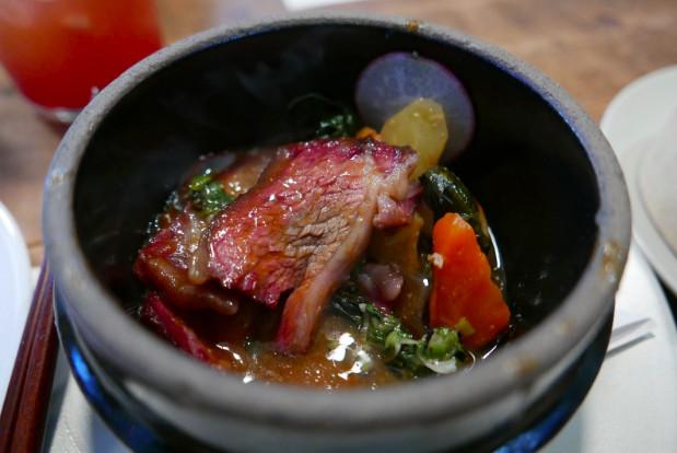 Han Oak is the brainchild of Peter Cho and Sun Young Park, a couple that understands the strain that a chef’s hectic schedule can have on family life, so they cut out the distance between the two and put a Korean restaurant literally in their backyard. Cho, a veteran of New York kitchens for almost a decade prior to his return to his home state of Oregon, can be spotted overseeing the kitchen stations with a baby in hand; his older child, Elliott, is often walking around the space, charming diners. “On a good day, his pants might still be on,” Peter tells me. Cho’s parents, who make the restaurant’s kimchi themselves, also patrol the kitchen, joking with the chefs on the line. It’s a completely immersive experience. What should be a clear line between upscale dining experience and family gathering is blurred.