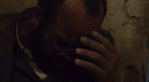 Holy shit. So, that’s Bernard firing one of Delos security’s futuristic guns, overseeing some security dudes getting massacred by hosts, and then putting his hands on his head in—what?—dismay, confusion, or a bit of both? (SAME.)