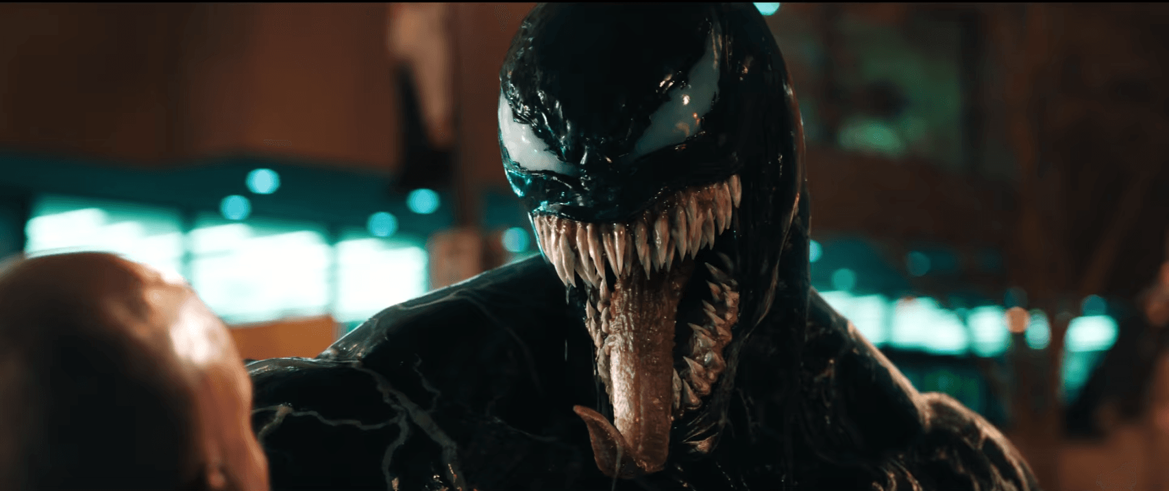 Where the initial teaser for Sony Pictures’ Venom gave us many shots of Tom Hardy’s unobscured face to gaze at and enjoy, the latest trailer for the film, released Monday, is all about the freaky symbiote-melded monster that Hardy’s Eddie Brock will become. And I really do mean freaky—when Venom is revealed at the end, we’re looking at Pennywise levels of razor-sharp teeth and a Gene Simmons–size tongue.