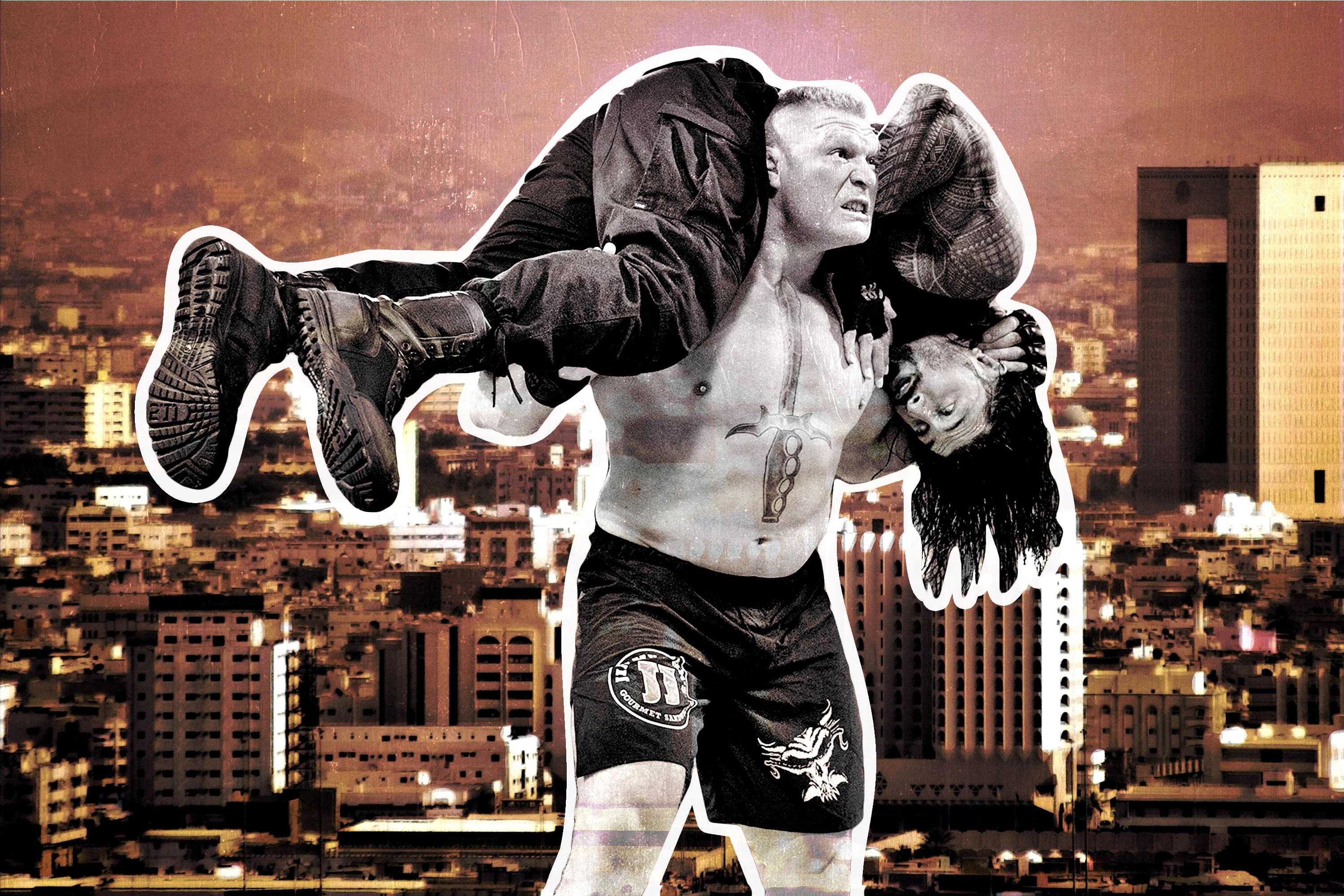 It has all the trappings of a Tribute to the Troops–style exhibition — talent-packed gimmick matches (the titular 50-superstar main event), crowd-pleasing one-offs (John Cena vs. Triple H), a through line of conquering Americanness — but with even fewer women in action (read: none). Though any unease about staging this spectacle in a country that openly shuns females (let alone so close to the fallout from the Fabulous Moolah controversy) for a reported boatload of money seems to have been largely smothered by hype for two bona fide blockbuster WrestleMania reruns (Brock Lesnar vs. Roman Reigns, AJ Styles vs. Shinsuke Nakamura).