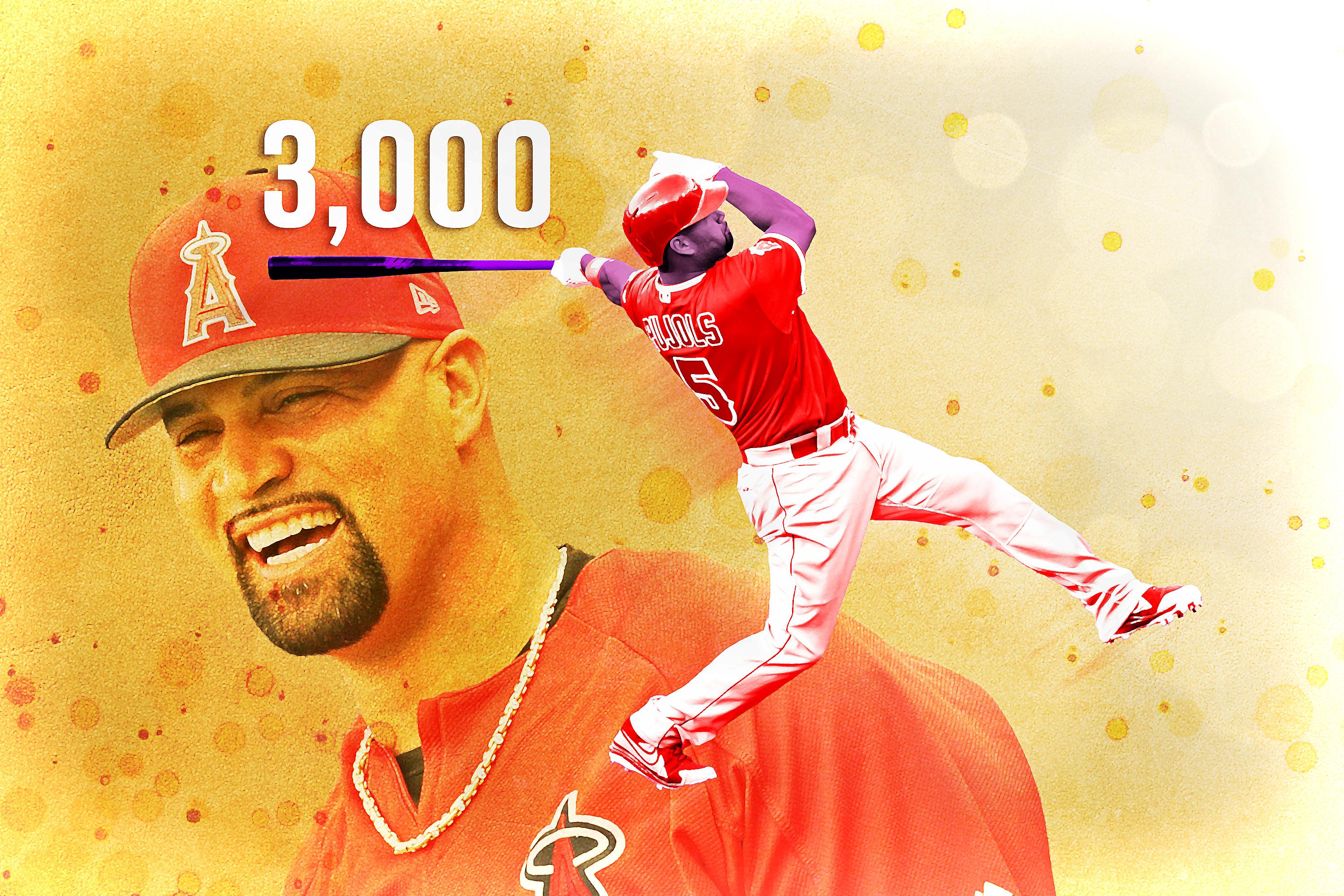 And now we can add Albert Pujols, who was great enough in his youth to be mentioned with Aaron and Mays, but is a faint shadow of the player he once was. He joined the 3,000-hit club with a single off of Mike Leake in the fifth inning of Friday’s game.