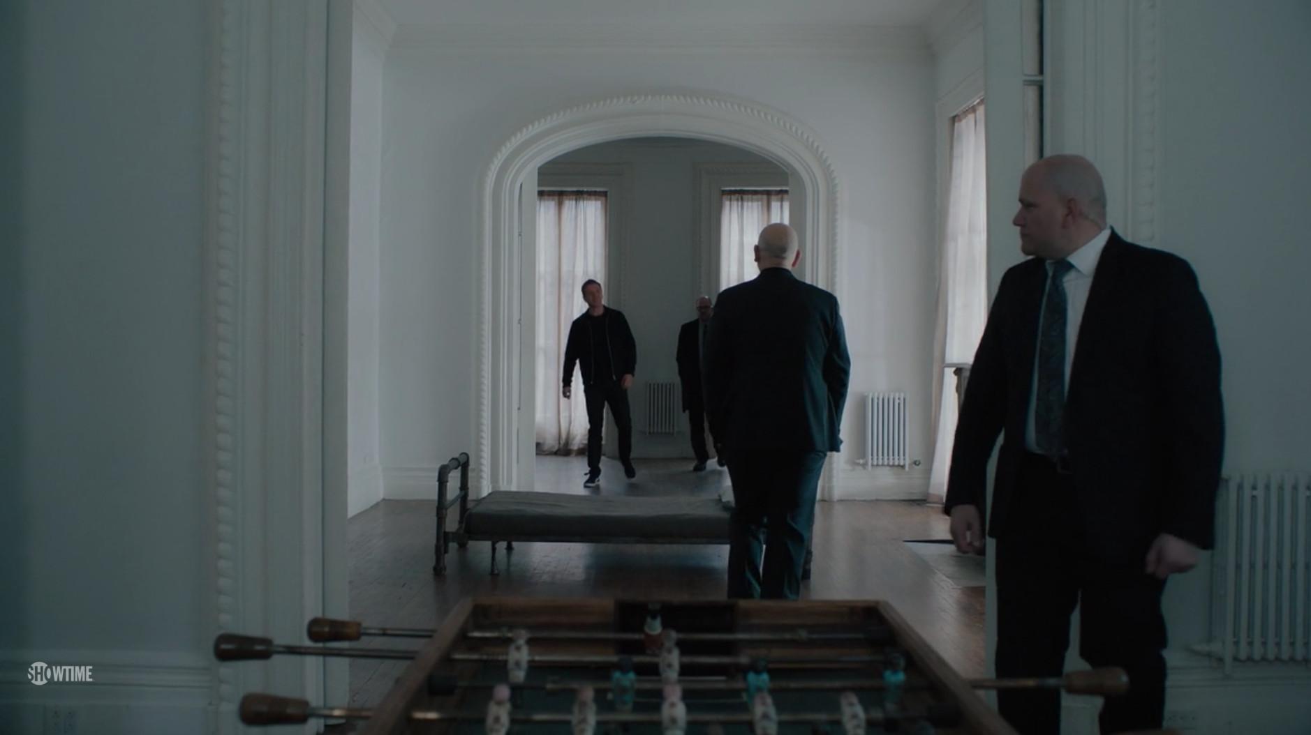 Grigor was pitched by Taylor to bring his money over to their new firm, but he sets up this meeting with Axe—who also brings his security dude, Hall—to talk options. Grigor wants Axe’s approval to kill Taylor—and Hall tries to interject with his own input. It was a bad idea to interrupt.