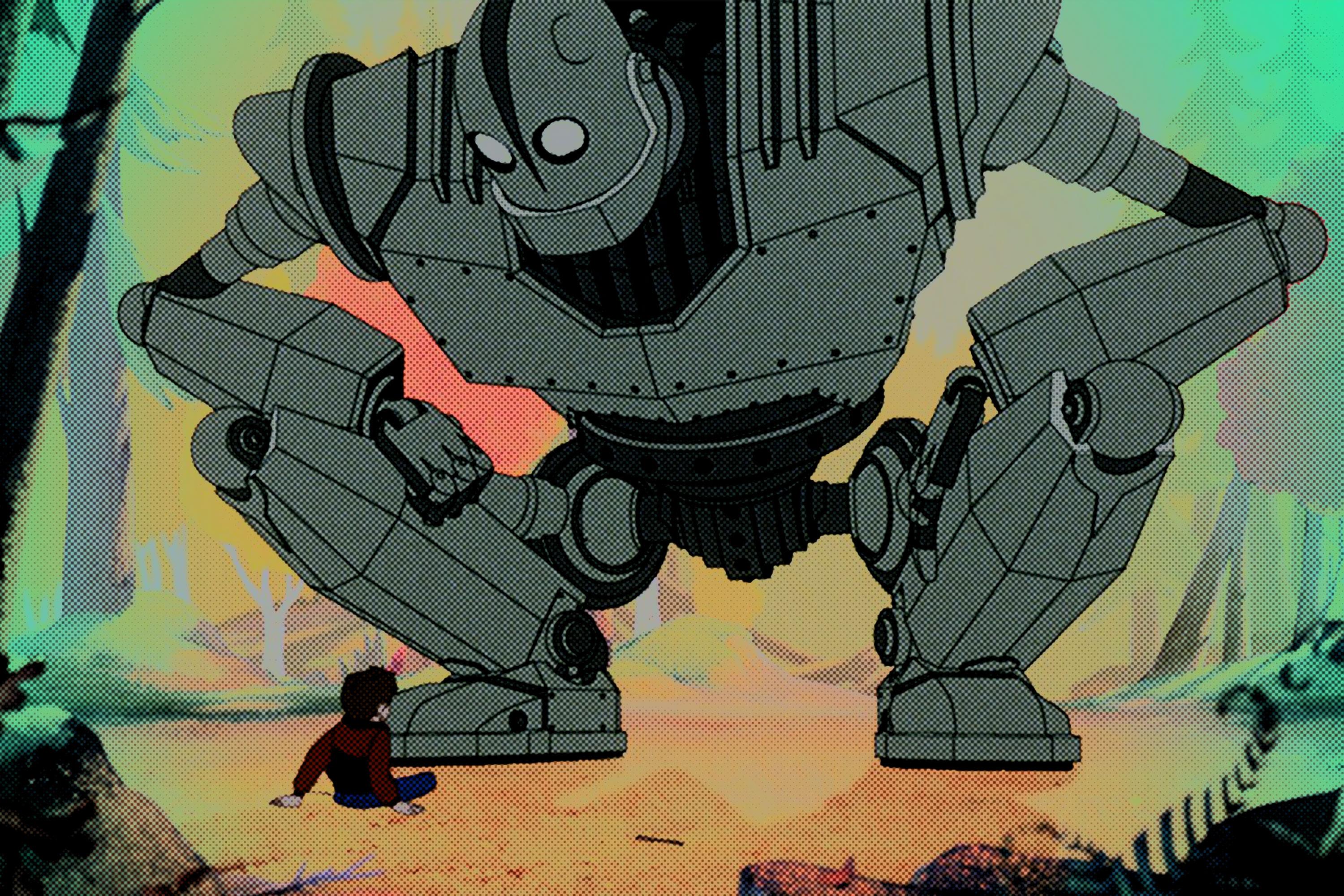Bird, who had worked for Disney as an animator on The Fox and the Hound before making his name working on The Simpsons during its glory days, took on the project in the midst of personal tragedy. His sister Susan had been shot to death by her estranged husband, a horrific event that gave additional urgency to the director’s pitch to Warner Bros.: “What if a gun had a soul?” In Hughes’s book, the Iron Man shows his strength mostly by taking punishment, passively allowing the space dragon to singe and scald his steel exterior in a Christ-like gesture of turning the other cheek. In Bird’s version, the Iron Giant is a fully weaponized creation capable of laying waste to everything around him; the suspense lies in whether he will pull his own trigger.