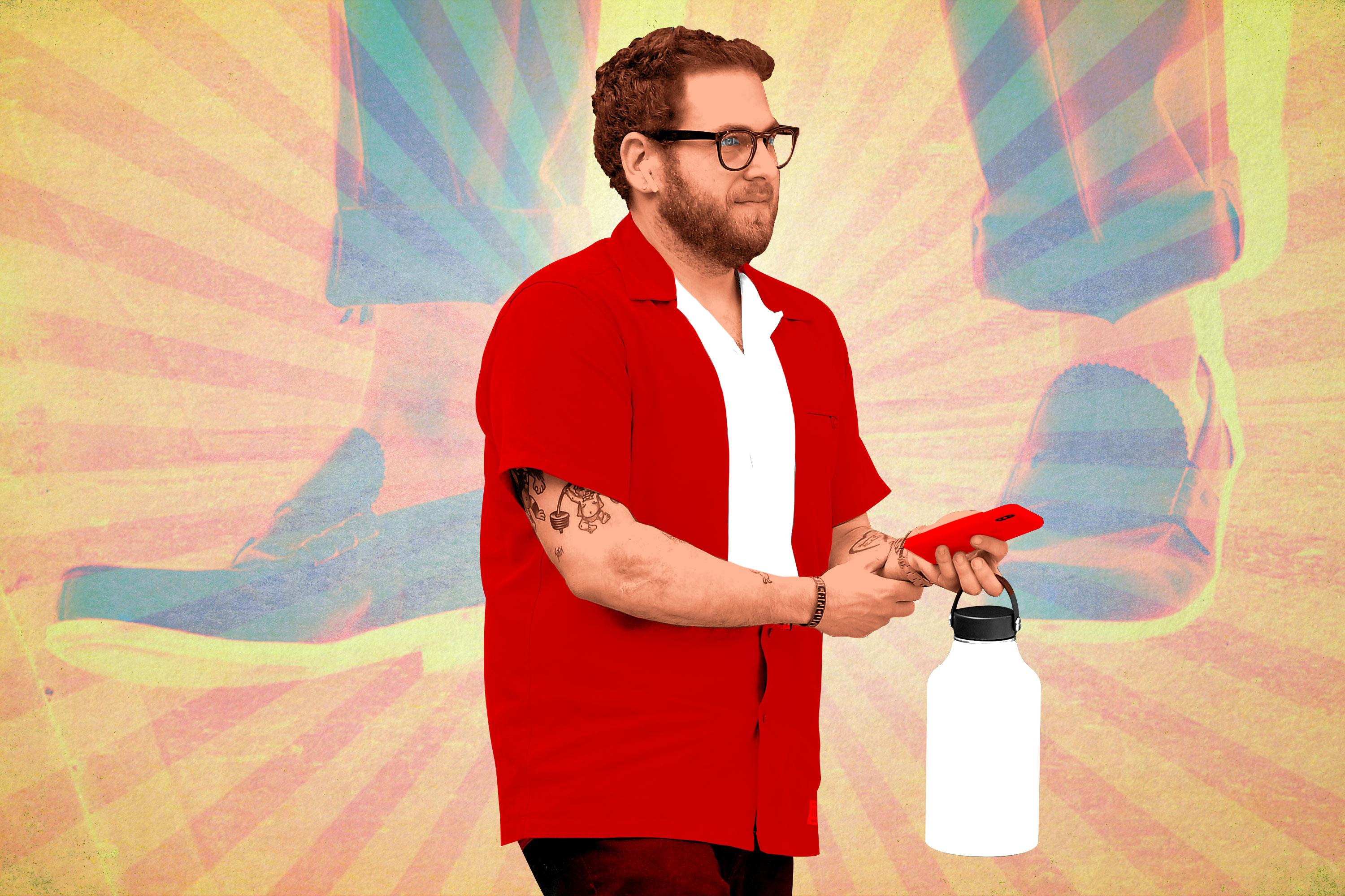 Hill’s love affair with Palace continued—he starred in an ironically low-budget commercial for the brand’s collaboration with Reebok announcing its New York City store opening—while he proceeded to turn the fact of paparazzi constantly photographing him into an opportunity to flex. In full Palace gear, him leaning up against a building to take a drag from a cigarette somehow became fashion statement. New York streets were a runway as he walked along in Raf Simons x Adidas shoes, as stickers from relatively obscure brands like Dime adorned his water bottle. By 2017, GQ had declared, “Jonah Hill Is Our New Style Savior,” while the popular Twitter account @Four_Pins, which is run by Schlossman, kicked off “Jonah Hill Fit Watch 2K17.”