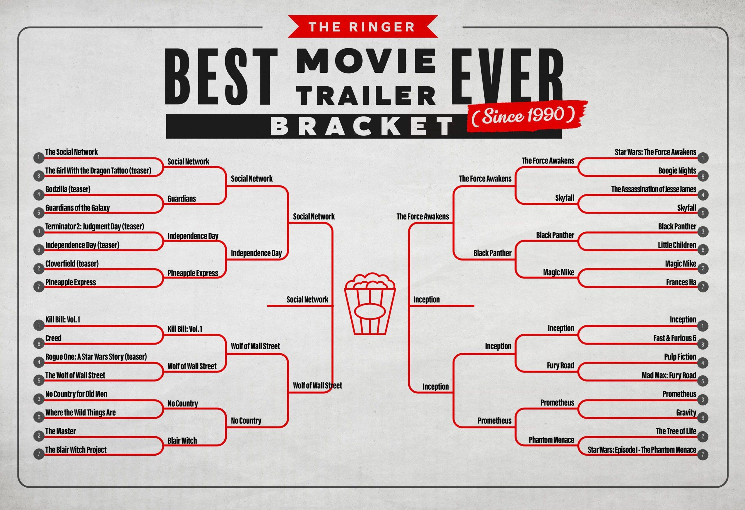 And then there were two: the “Creep”-scored trailer of ‘The Social Network’ versus the “BWONG” of ‘Inception’Since the advent of YouTube, trailers have functioned as a high-performing emotion-elicitation program. It’s not just what the movie is about or who appears in it. It’s how this movie will make you feel. And the best of them can trigger that emotion, over and over again. And that’s why the trailers are so damn good, if a little scary. (It’s a little disturbing how easily and repeatedly trailers can manipulate your emotions, isn’t it?) And that’s why we made this bracket to decide the best trailer since 1990. With four rounds of the Best Movie Trailer bracket in the books, we’ve reached the final. One of our two remaining trailers will officially be crowned the best modern movie trailer.