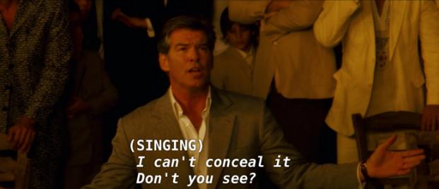 Alright. Spoiler alert coming after this OG Mamma Mia! screenshot of Pierce Brosnan, who can’t sing, singing.