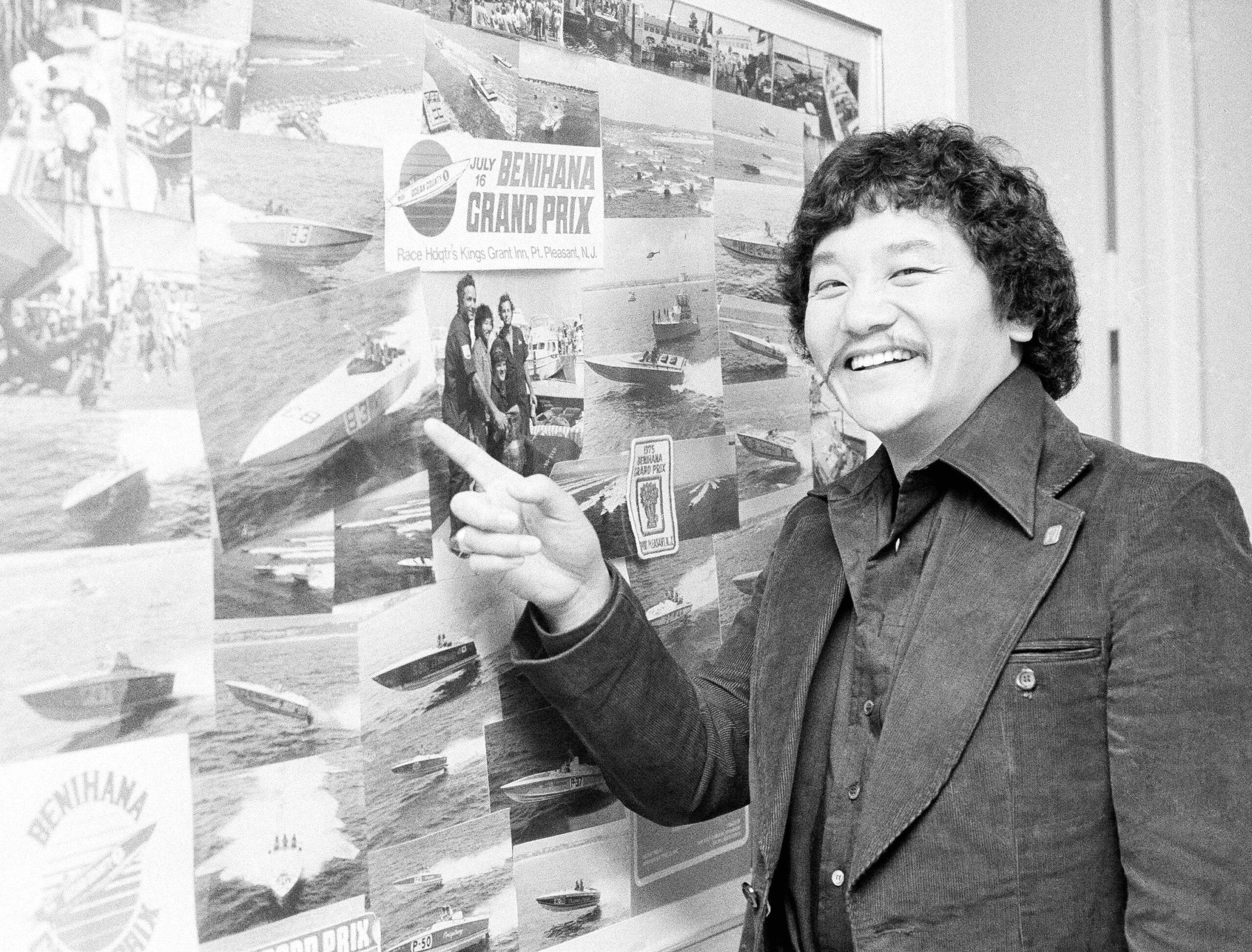 Rocky Aoki’s life has a touch of the ridiculous. He was a man who survived a near-fatal power-boating accident in September 1979 that ruptured his aorta and lacerated his liver; who boasted about fathering three different kids from three different women “at exactly the same time”; who launched both a softcore porn magazine called Genesis and a four-story nightclub called Club Genesis; who began a failed line of frozen entrees with the tagline “Benihana. We either make it great, or we don’t make it at all”; who piloted a helium hot air balloon across the Pacific Ocean; who stepped down from his own company once he found himself under investigation, and eventually prosecuted, for insider trading in 1999; who sued four of his seven children in 2006 for breach of fiduciary duty.