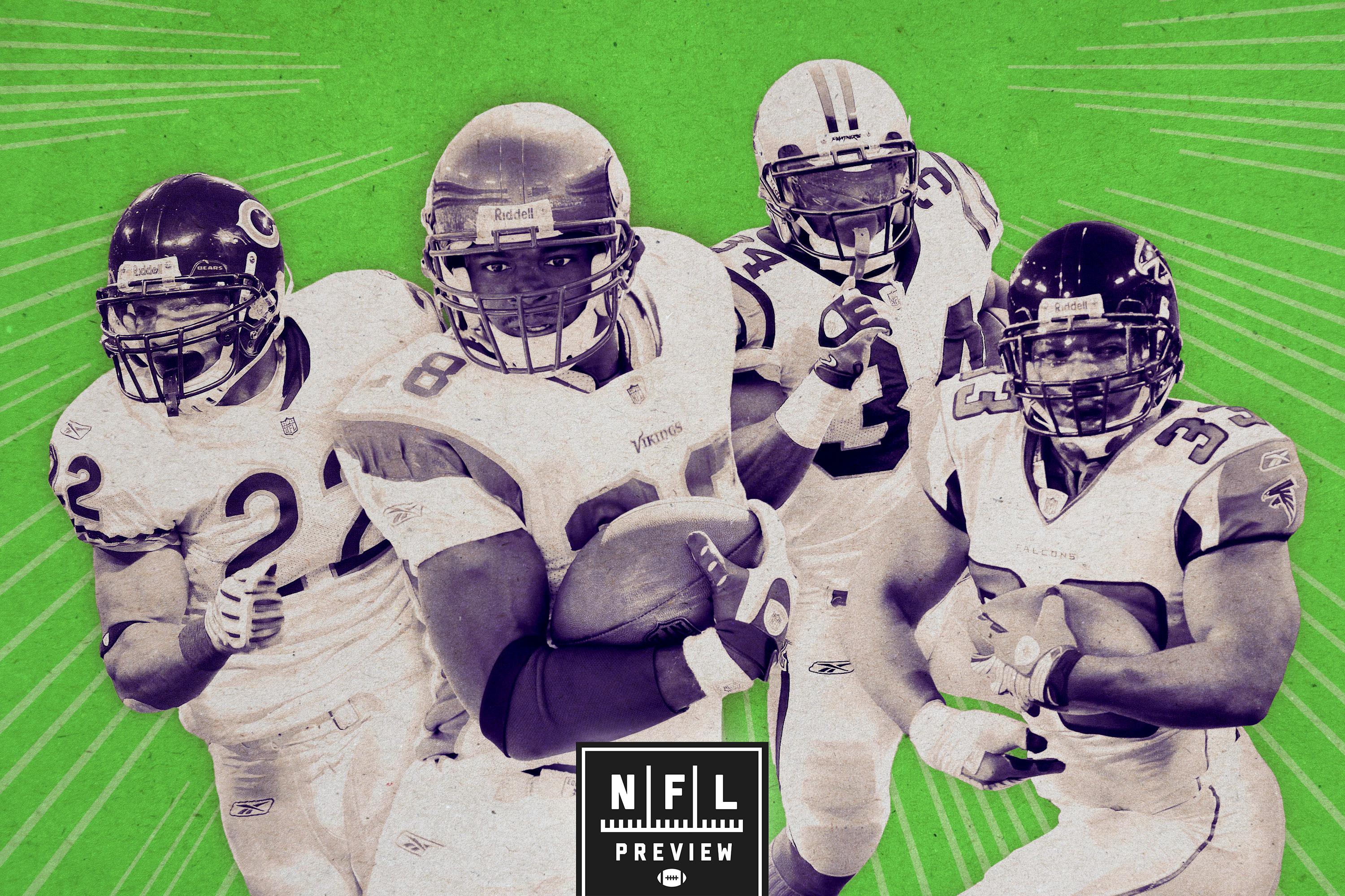 That April’s NFL draft foreshadowed the season to come: Five running backs were taken in the first round—the most at that position since 2000 and in the years since. The Raiders used the fourth overall pick on Darren McFadden; the Panthers chose Jonathan Stewart with no. 13; the Cowboys took Felix Jones with no. 22; the Steelers picked Rashard Mendenhall with no. 23; and the Titans took Chris Johnson with the 24th overall pick. In subsequent rounds, teams jumped on future standouts like Matt Forte (no. 44); Ray Rice (no. 55); Jamaal Charles (no. 73); Tim Hightower (no. 149); Peyton Hillis (no. 227); and Justin Forsett (no. 233). That talented group of rookies made an early impact, and with a burgeoning cadre of second-year pros in Adrian Peterson, Marshawn Lynch, and Ryan Grant—plus a handful of savvy veteran runners like LaDainian Tomlinson, Clinton Portis, and Thomas Jones—the NFL ground game had a season in the sun.