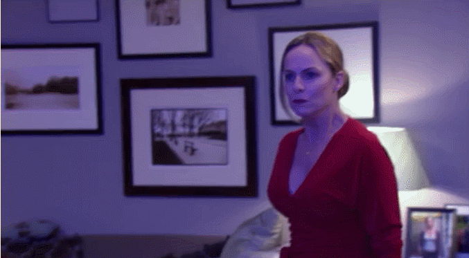 We did it three times and I hit it every time. I think all the crew guys kind of had a crush on me after that. I loved the moment in “Dinner Party” where I put on the Hunter song and I danced inappropriately, because I am a dancer, and it was super fun for me to try to kind of dance just a little off the beat, just a little wrong. I also loved the moment where [Michael Scott] heard the ice cream truck and he ran through the glass door. Because Steve [Carell] and I were kind of improvising there and I said, “That makes me the devil” and I did those little devil horns, and he has such a real reaction. They were filming both of us at the same time, so you get to see me doing that and his real reaction to it in the moment.