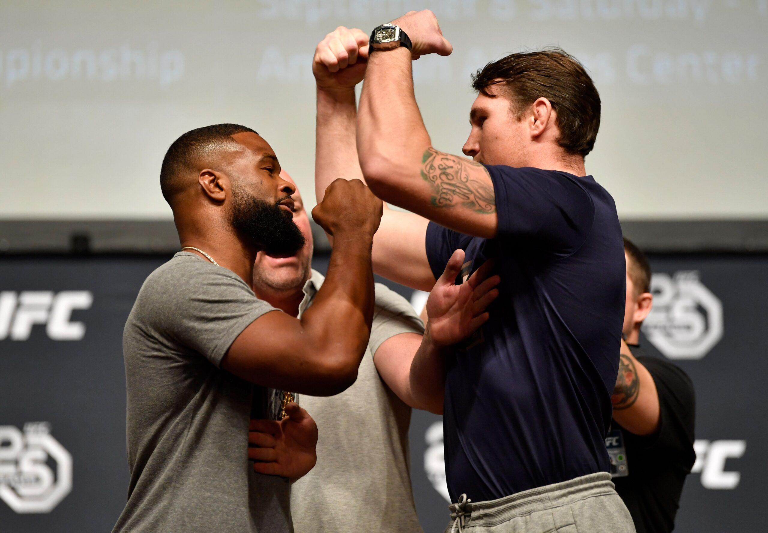 When you hear combat sports media groaning about the UFC’s lack of stars, it’s an indictment of some of the champions who currently hold belts. One of those who doesn’t bill as a star is welterweight champion Tyron Woodley, despite being among the longest-tenured titleholders on roster, and who headlines UFC 228 on Saturday night against the Englishman Darren Till. Lest you think that just mouthing off will get you over in MMA, Woodley defies that assumption too. He’s traditionally been one of the more vocal champions, yet much of what he has to say either rubs fans the wrong way (like when he won the belt and called out dormant MMA star Nick Diaz) or royally pisses off the UFC (like when he said a fight with Nate Diaz was being made, and Dana White cleared up the misunderstanding by calling him “full of shit.”).