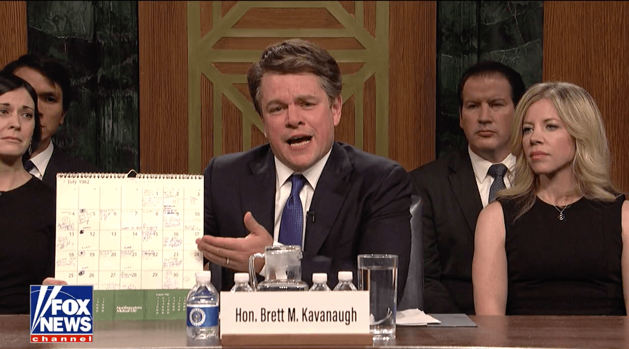 Before Matt Damon even appeared on screen, you could tell Lorne Michaels was up to his old tricks. Inevitably, the topical cold open centered on the contentious confirmation hearings of Supreme Court nominee Brett Kavanaugh. But Kavanaugh’s appearance within the sketch was oddly delayed, the camera lingering first on Leslie Jones as a Fox News correspondent, then Alex Moffat and Cecily Strong as Chuck Grassley and Dianne Feinstein, then an empty chair. It’s almost like they were building to a reveal! And then Damon walked in.