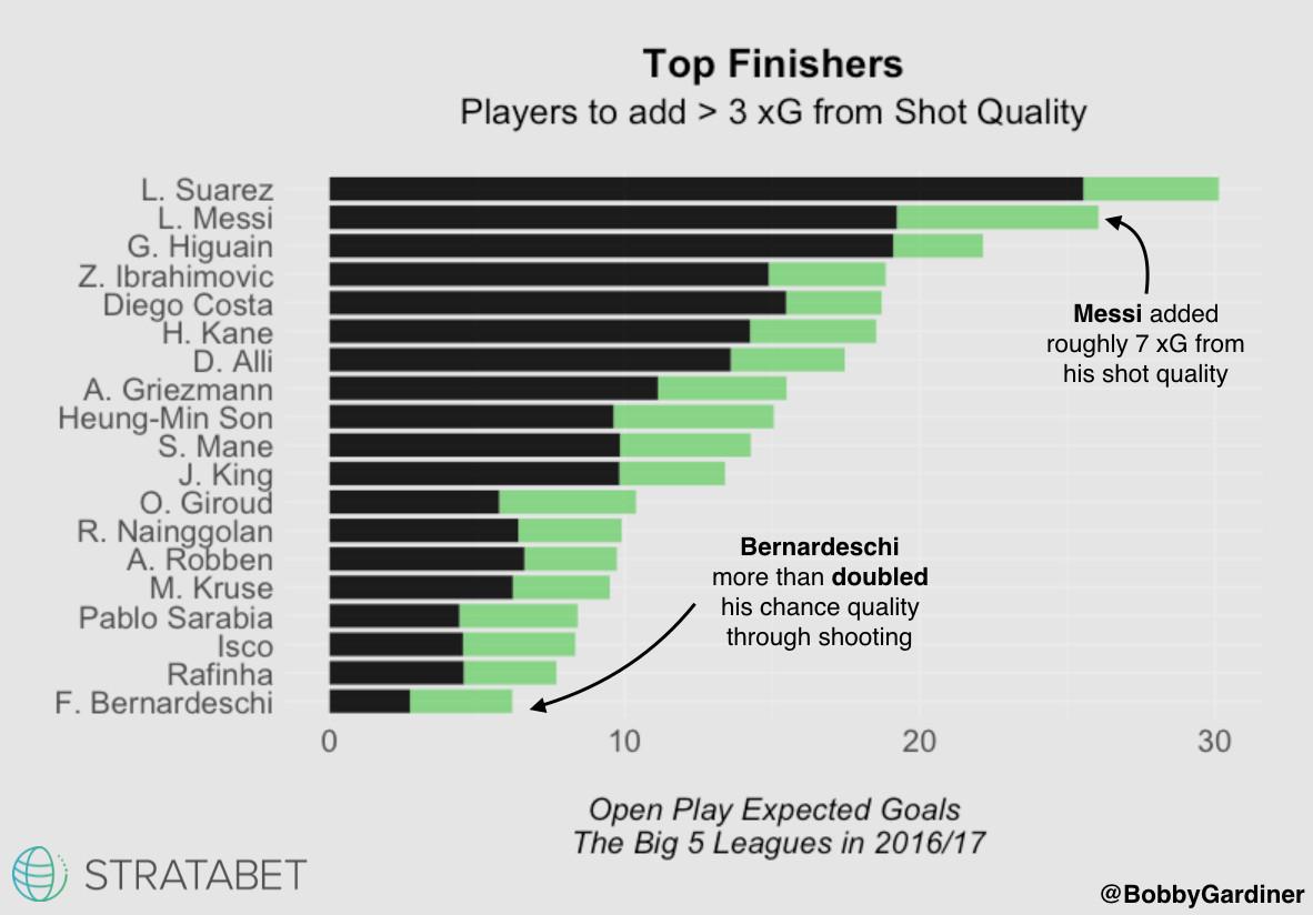 “People have always believed that finishing is a genuine skill but, except in truly exceptional cases like Leo Messi or Luis Suárez, we’re only now close to proving its existence conclusively with data, at least as far as publicly available research is concerned,” said Marek Kwiatkowski, a football analytics consultant.