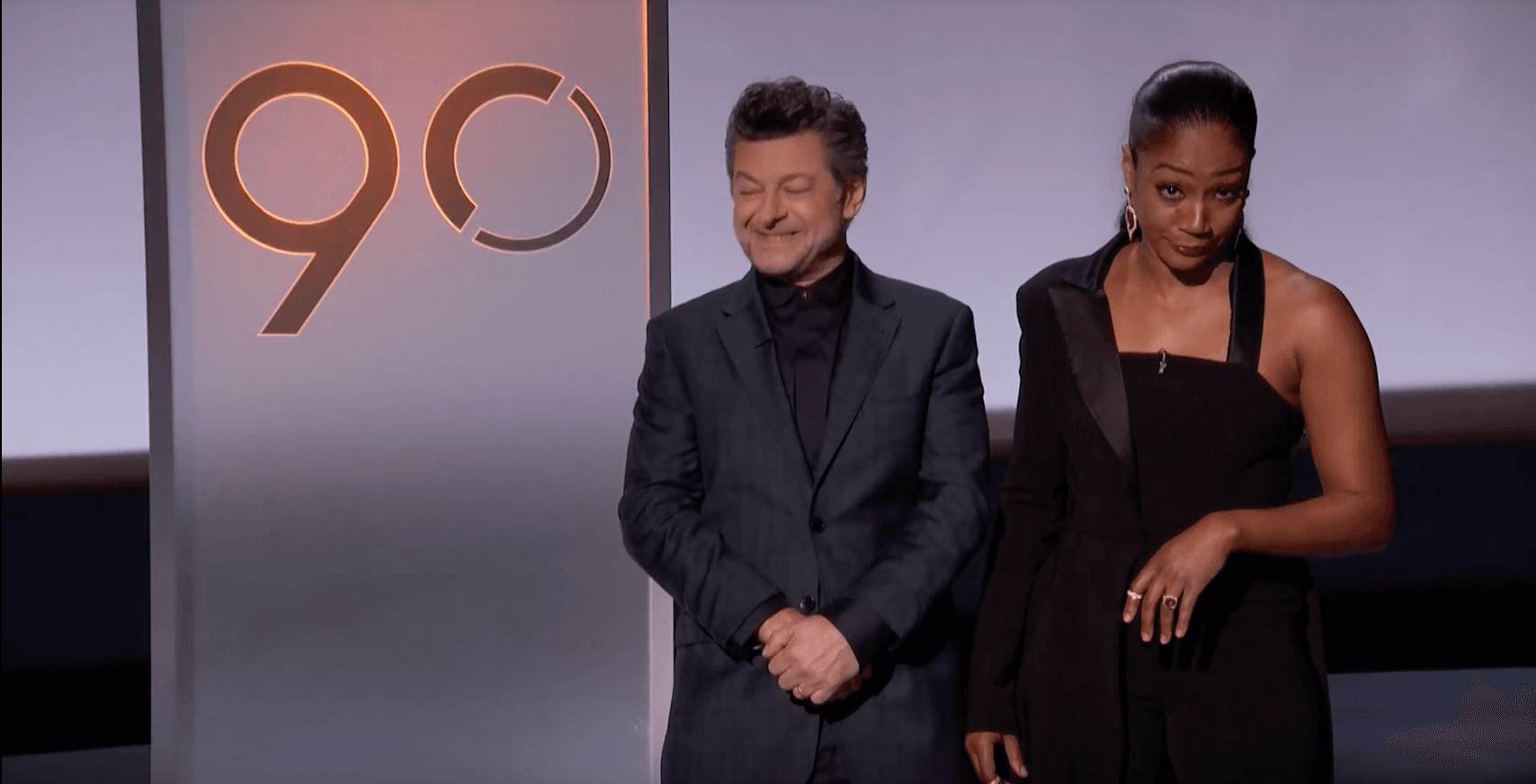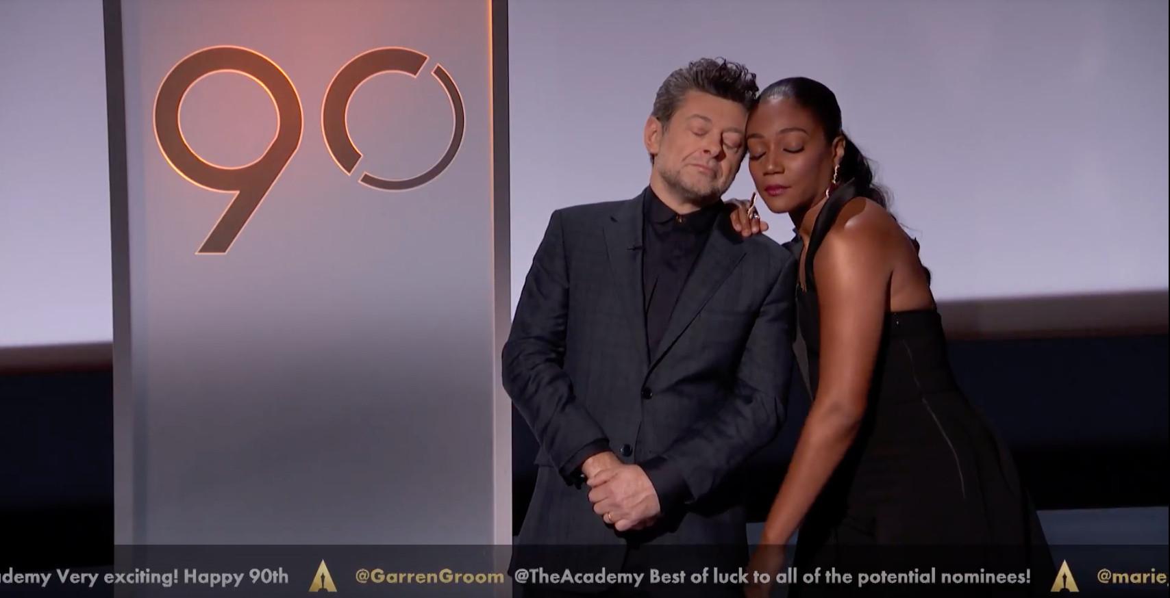 Beyond getting Serkis to stand dramatically, Haddish also helped him celebrate after his movie War for the Planet of the Apes was nominated for Visual Effects.