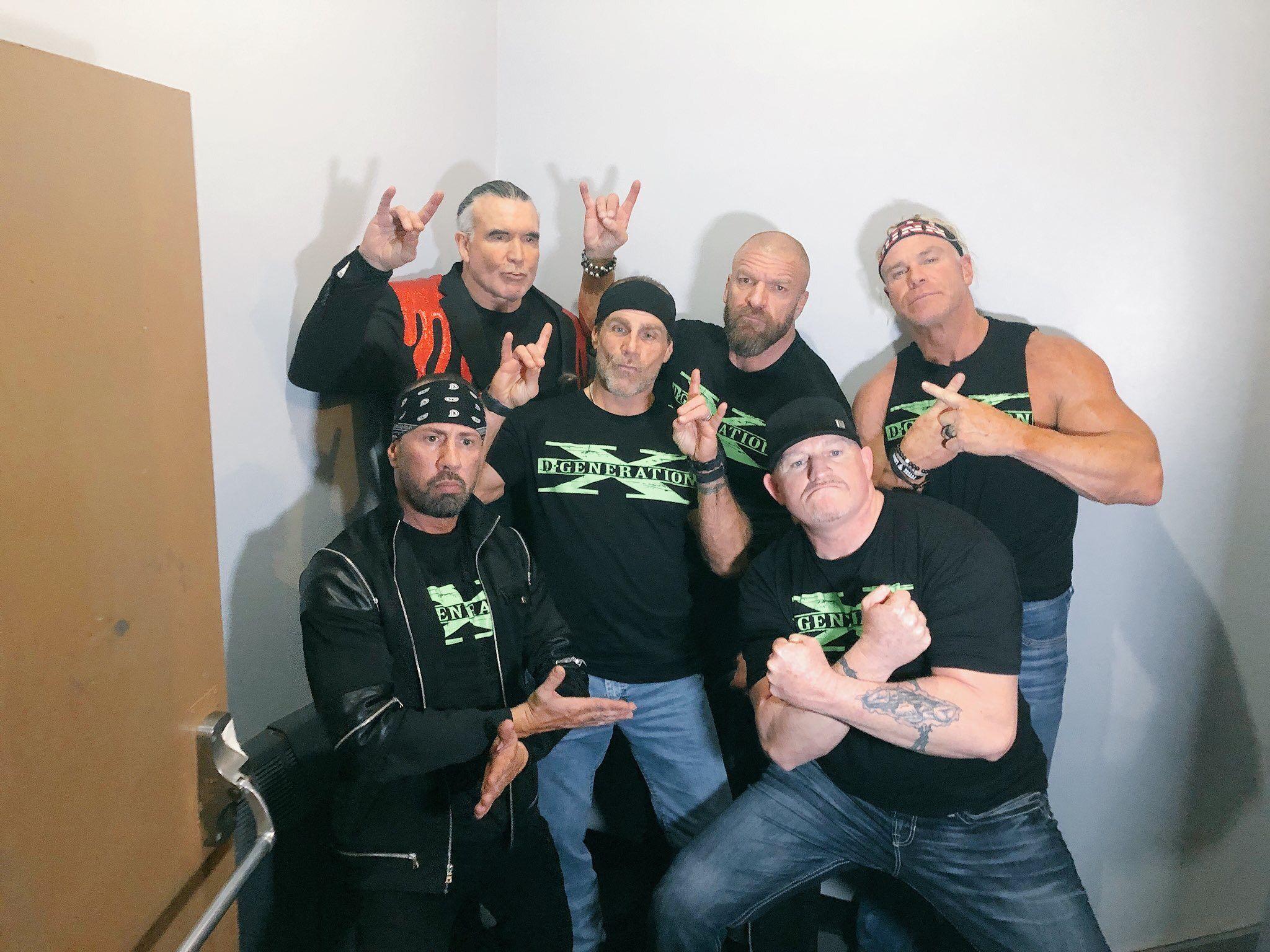 23. Degeneration X — Shawn Michaels, Triple H, X-Pac, Road Dogg, and Billy Gunn, along with their off-screen compadre Scott Hall — had a reunion concert in the Manhattan Center, and they posted a group photo on social media afterward: