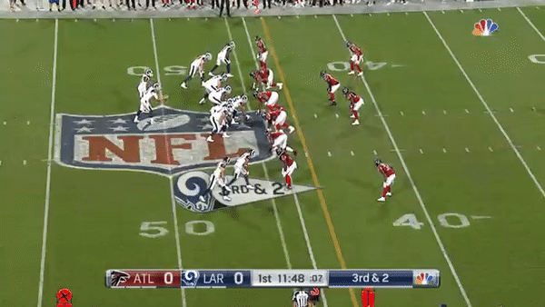 During the regular season, the Rams made short screens and checkdowns to Gurley a staple of their offensive approach. Getting Gurley into open space and allowing him to turn easy tosses into massive gains was a weekly occurrence. Against the Falcons, those types of plays were nowhere to be found. Atlanta used a combination of team speed, relentless discipline, and excellent open-field tackling to completely silence Gurley as a receiver.