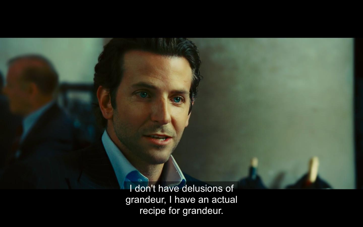 Limitless, Neil Burger’s 2011 sci-fi fable about a pill that can turn you into an instant super-genius, made a pile of money (and inspired a short-lived CBS spinoff) despite making very little sense. Cooper plays a long-haired loser writer who slowly transforms into a close-cropped Master of the Universe dickhead, and suddenly his movies were in uneasy dialogue with each other. Limitless rehashes the we use only 10 percent of our brain canard Wedding Crashers turned into a joke, and The Hangover’s funniest scene, in which Zach Galifianakis Rain Mans his way to blackjack glory via onscreen equations, is now a dead-serious depiction of Cooper writing a bestselling novel in four days.