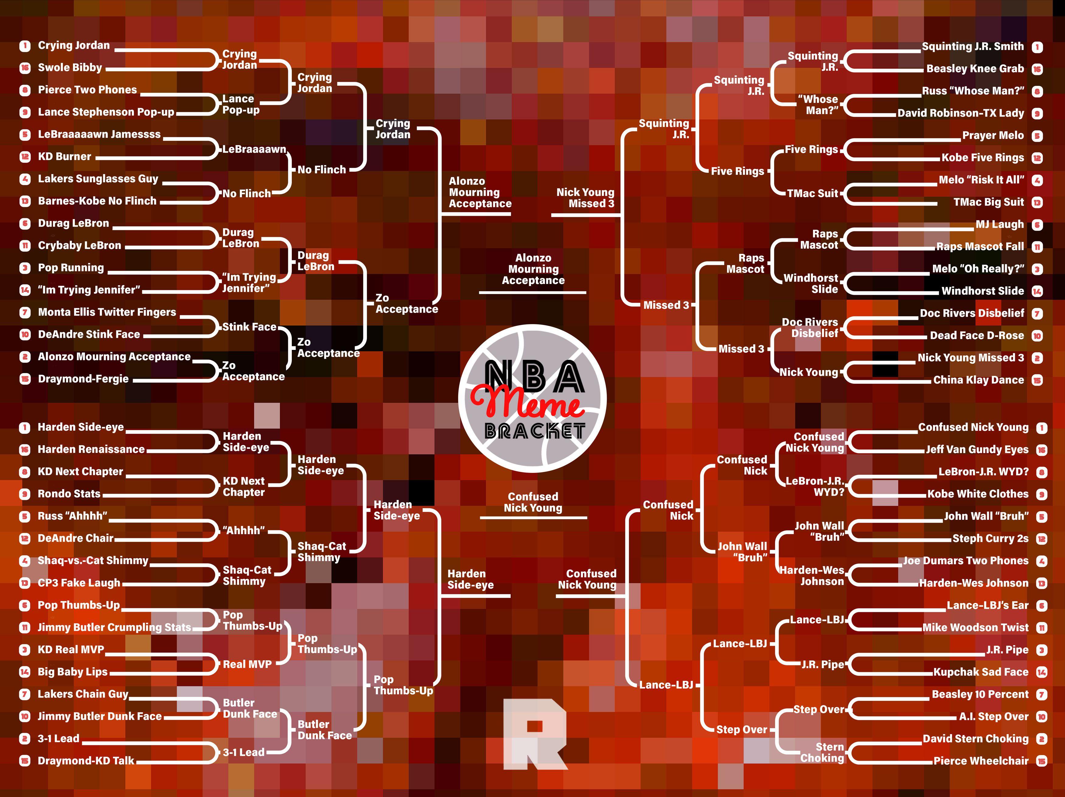 Alonzo Mourning Acceptance and Confused Nick Young square off for the ultimate prizeWelcome to the Memederdome. After five rounds of voting and just shy of 2 million total votes cast, we’re left with two iconic hoops reaction GIFs. The first, Alonzo Mourning Acceptance, entered the tournament as the East Division’s no. 2 seed and reached the final by running through stalwarts like no. 1 overall meme Crying Jordan and Nick Young Missed 3. The other, Confused Nick Young, was the Midwest Division’s top seed. It toppled Lance Blowing in LeBron’s Ear and Harden Side-eye en route to the championship game. Just a few hours, and your votes, stand between us and a grand champion. There can be only one meme to rule them all.