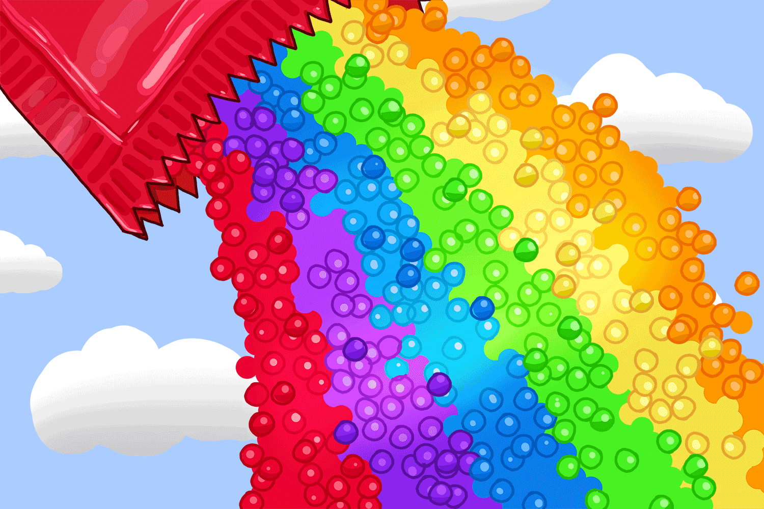 Next year marks the 25th anniversary of “Taste the Rainbow,” the iconic and enduring Skittles ad campaign. The Skittles commercials and brand identity have conformed to the increasing absurdity of each passing era, to varying degrees of success, but it’s the association with rainbows that has taken on a life of its own. “Taste the Rainbow” became as prismatic as its inspiration. Skittles could be just about anything to anyone.