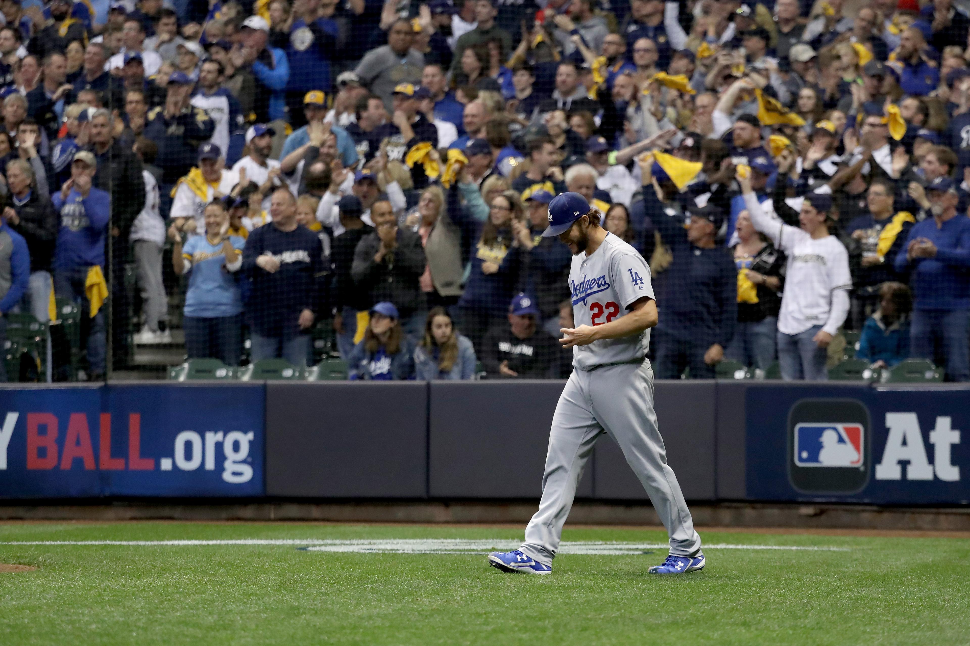 In short, it happened again. Kershaw once again ran into the one blemish on his Hall of Fame career—a rocky postseason outing—as he surrendered five runs in three-plus innings. The Dodgers, who fell apart defensively around their starter early, clawed back into the game late, bringing the go-ahead run to the plate in both the eighth and ninth innings and stranding the tying run at third against Brewers right-hander Corey Knebel. The Brewers won their 12th game in a row, dating back to September 23, and went up 1-0 in the NLCS. If they win on Saturday, they’ll be two games up in a league championship series for the first time in franchise history.