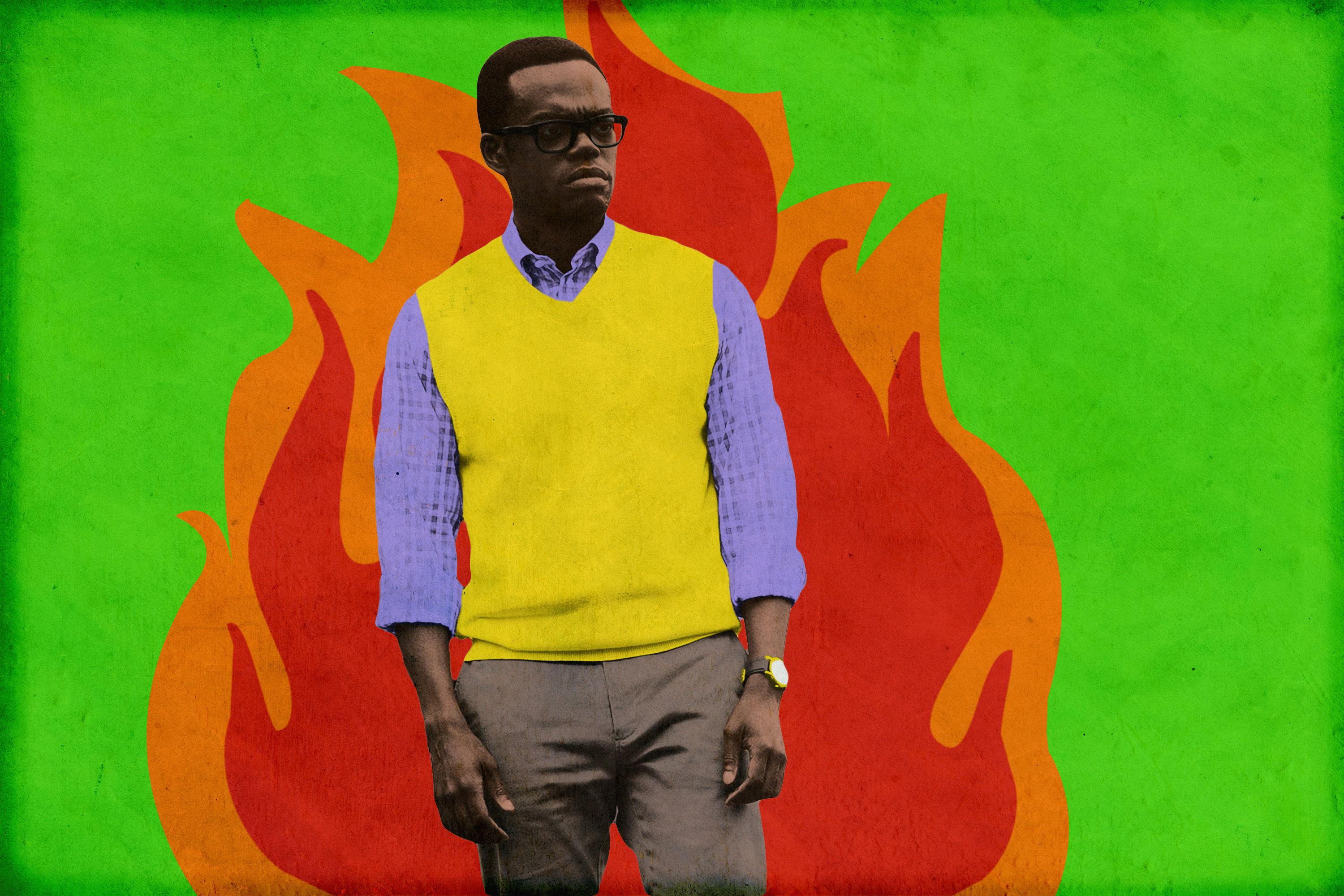 But being a complete mess isn’t what makes Chidi the Worst Person of the Week. What does is the way he spreads his ennui to impressionable minds like fertilizer. Speaking to his philosophy class, he tells them the three primary ethical foundations set down by philosophers—virtue ethics, consequentialism, and deontology—are all “hot stinky cat dookie.” “The true meaning of life,” he continues, “the actual ethical system that you should all follow, is nihilism. The world is empty; there is no point to anything, and you’re just gonna die, so do whatever. And now, I’m gonna eat my marshmallow candy chili in silence, and you all can jump up your own butts.”