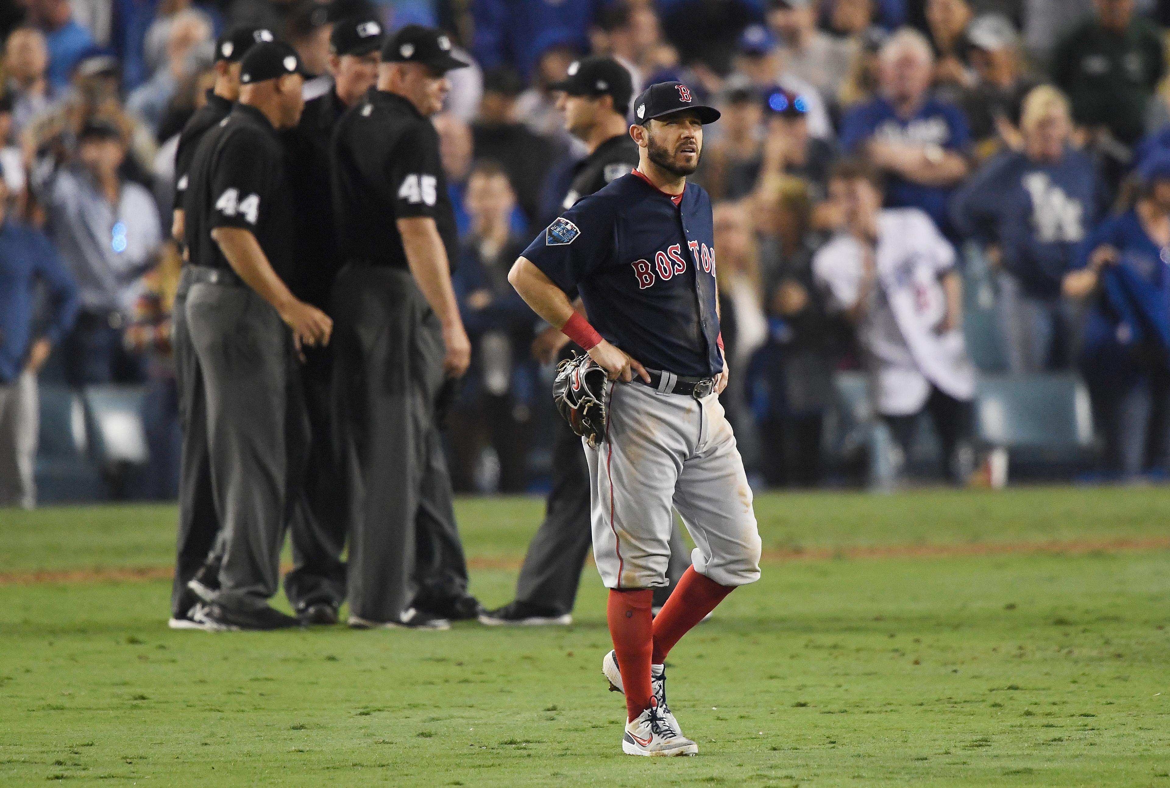 Kinsler’s night, in sum: 0-for-3 while batting in the spot of Martinez, who earlier on Friday won the Hank Aaron Award as the top hitter in the American League in 2018, along with one time thrown out on the bases, two times nearly thrown out on the bases, and one error on a play that would have given the Red Sox a 3-0 series lead. Any Bill Buckner comparison is unfair—Yasiel Puig’s grounder did induce a trickier play than a routine grounder, for one, and more importantly, Boston already has three World Series titles in the past 15 years, so there’s no drought or curse for context in 2018. But it will also be hard for Boston fans not to remember Game 3 as the “Kinsler game” for years to come if the team doesn’t ultimately turn its extant series advantage into another trophy.