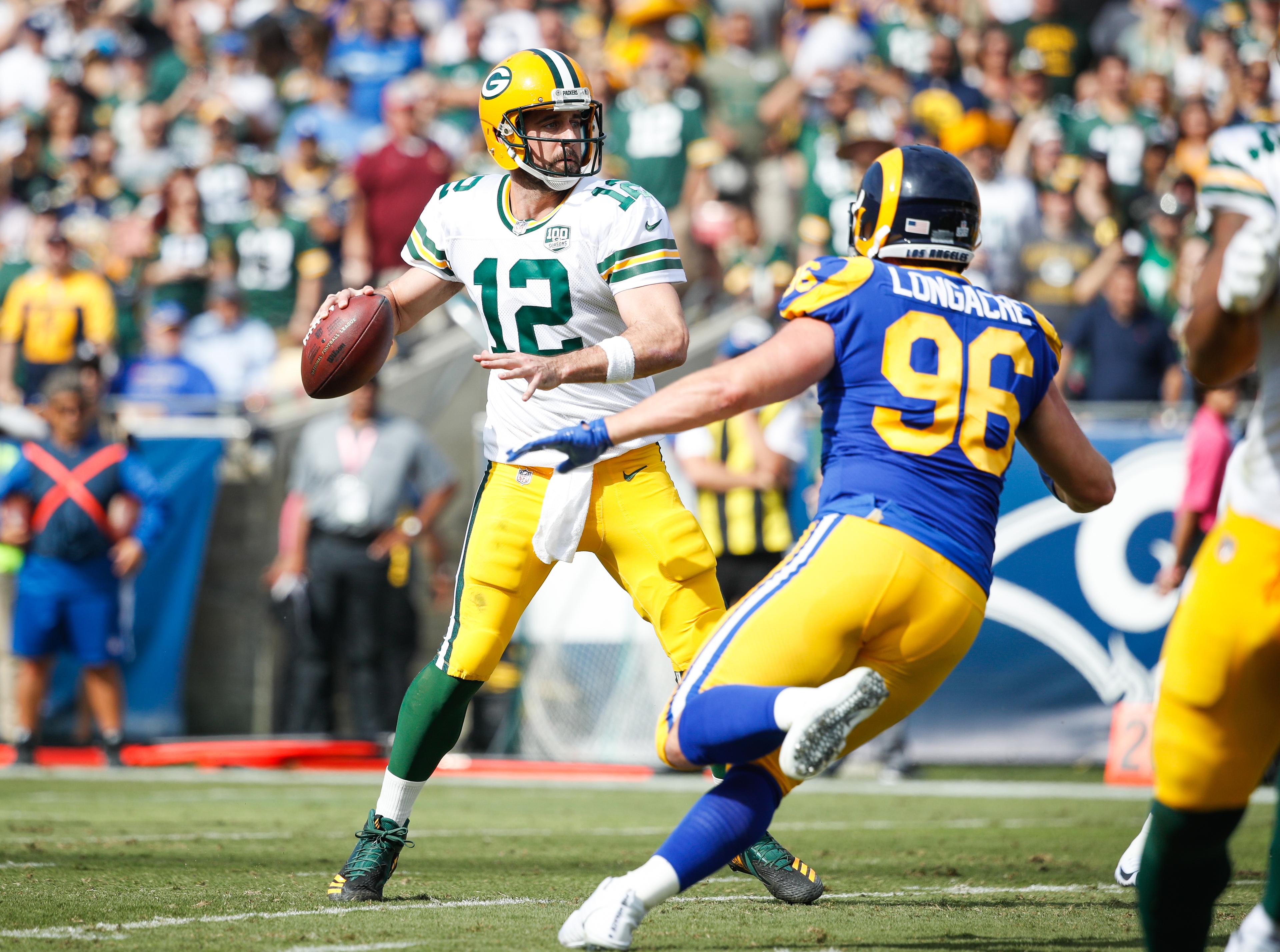 Of course, the Packers showed plenty of warts in the loss. Green Bay had questionable clock management late, including a sequence in which the team used a timeout while facing a third-and-6 from its own 25-yard line while up one with just under six minutes to play. Rodgers took a 10-yard sack after the timeout, and then rookie punter J.K. Scott punted just 25 yards, giving the Rams the ball 40 yards from the end zone and setting up their game-winning field goal. When Green Bay needed to block Aaron Donald, the line often failed, letting Donald collect a pair of drive-ending sacks on third down and giving up a safety when Donald and the Rams’ defensive line beat the Packers’ blockers. (The two points would be the final margin in the loss.)