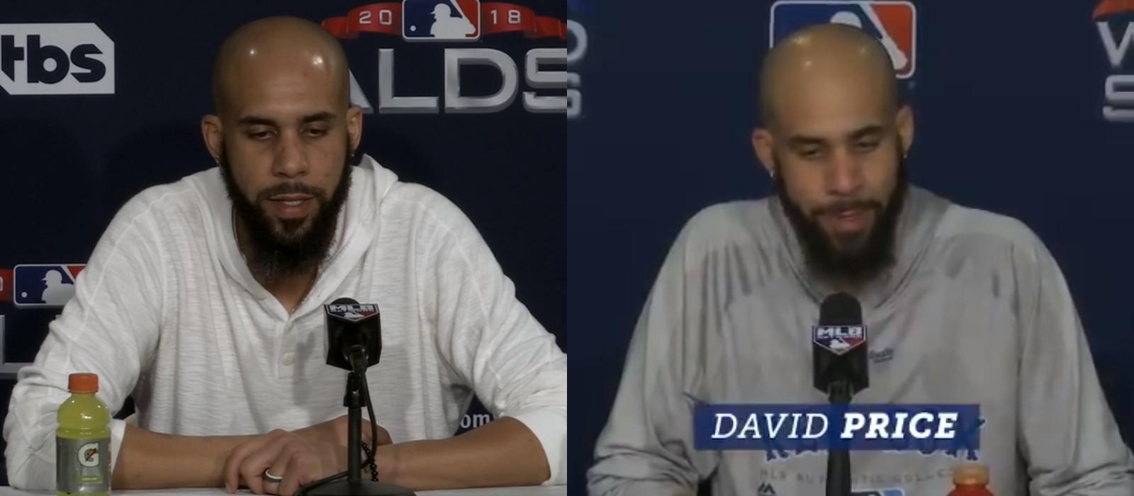 It was probably the light. Hell, it had to be the light, or the lower resolution, or the backdrop of the off-white, champagne-splotched pullover that David Price was wearing as he sat at a podium and talked to the press after winning World Series Game 5 and clinching the latest Red Sox championship. But it looked for a few minutes like the strands of gray were gone from the beard that had showed a light tuft when the 33-year-old sat at a similar podium after being booed off the mound in Boston barely three weeks before, in ALDS Game 2.