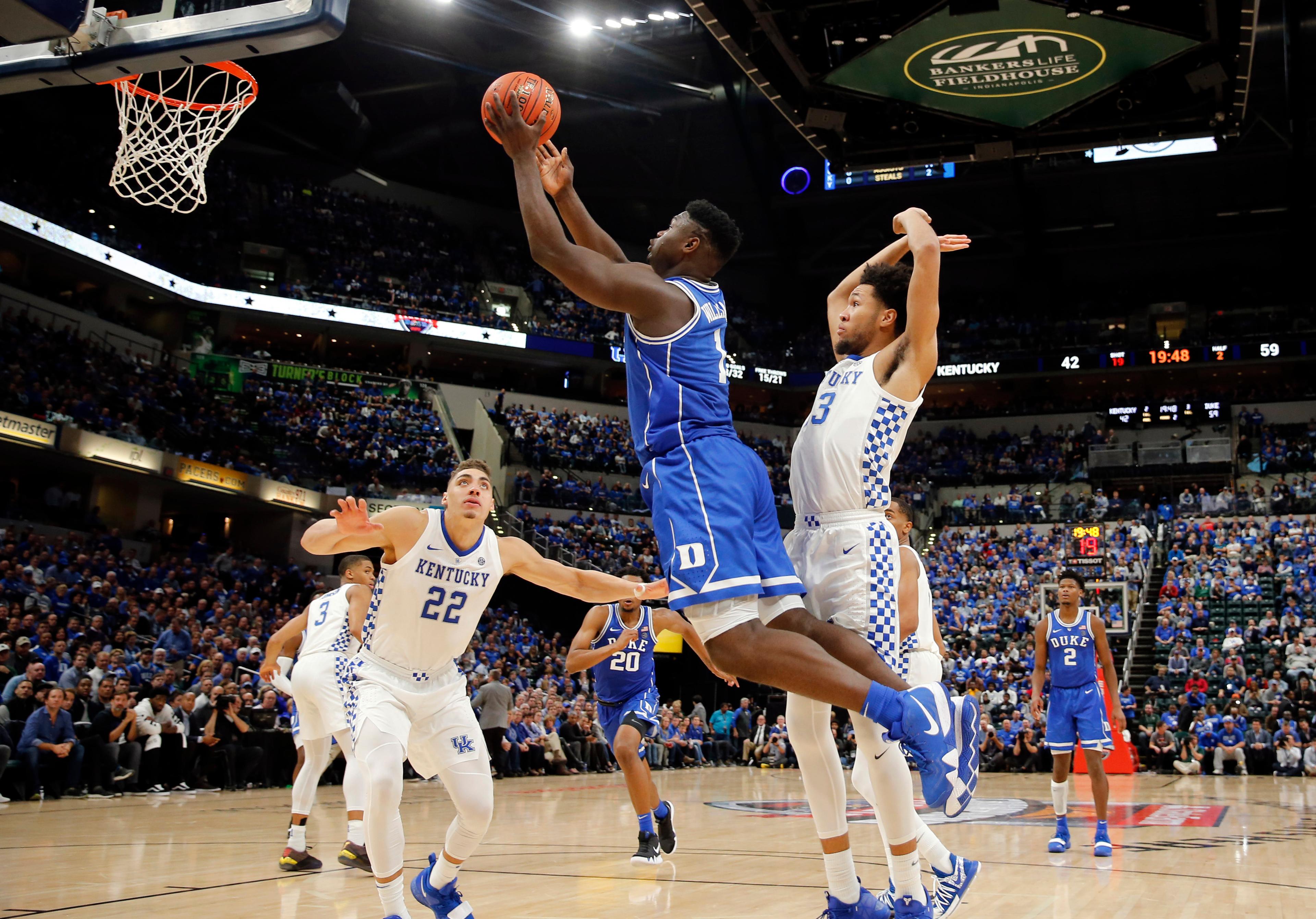 For months, college hoops fans have been bombarded with mixtapes and columns and magazine spreads highlighting Duke’s star-studded recruiting class. The hype machine was working at maximum power, pumping up the vaunted freshman trio of Zion Williamson, R.J. Barrett, and Cam Reddish. Injuries prevented fans from seeing the team at full strength during a preseason jaunt through Canada. That changed at the Champions Classic on Tuesday, when the full might of Duke’s menacing attack was on full display, and college basketball gained a clearer picture of its new reality: There is Duke, and then there is everyone else.