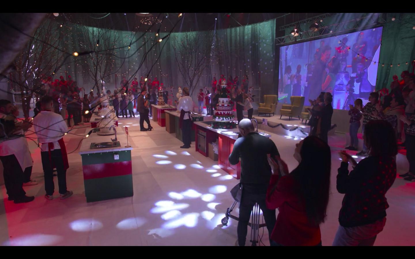 A few hours into the competition, Stacy heads to the KitchenAid in order to start on the cake’s filling, a raspberry puree. But by that time, we can see that the Christmas castle cake is nearly complete and covered in fondant.